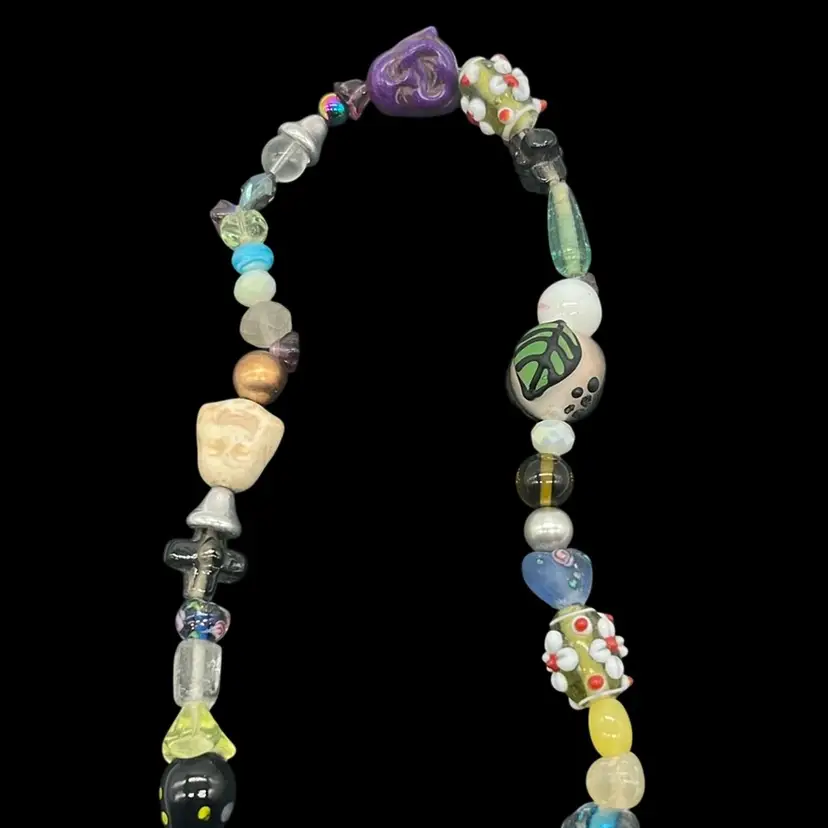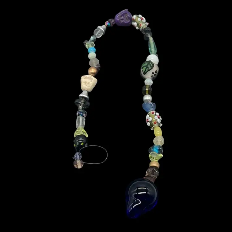 Such a beautiful strand of beads! And several glow under UV! Ready to hang in your window! Approx: 15”