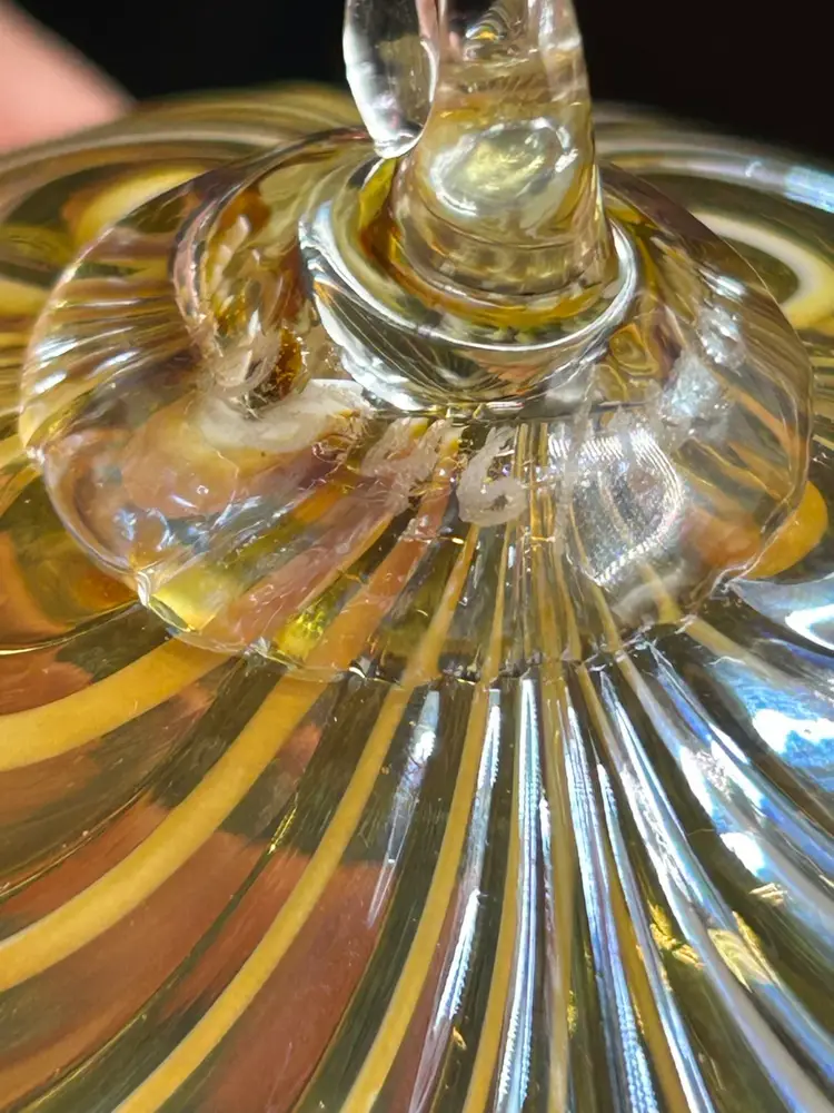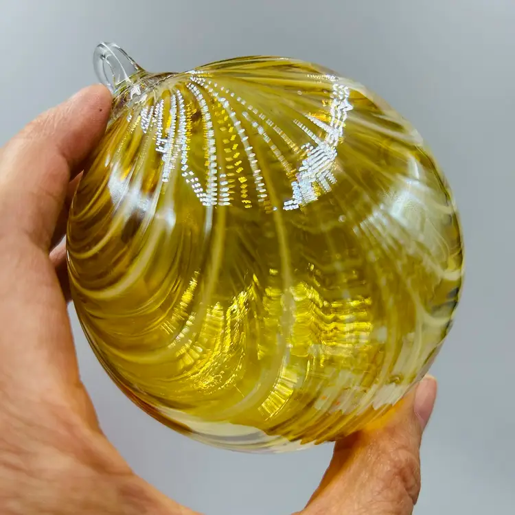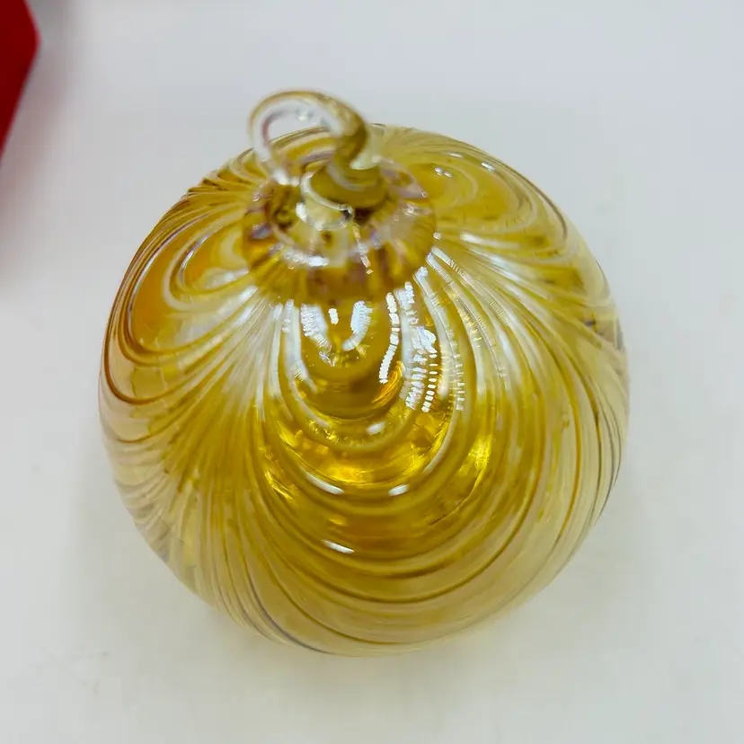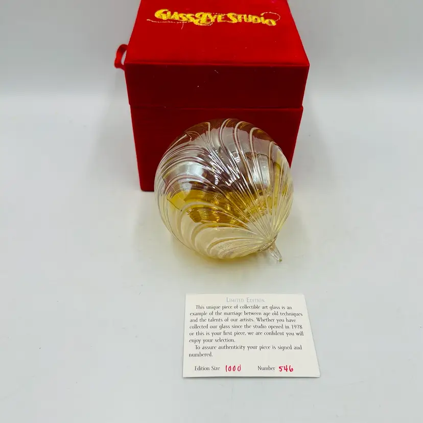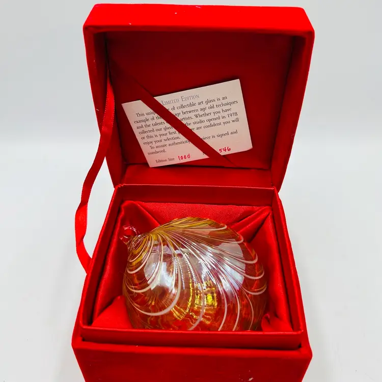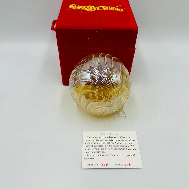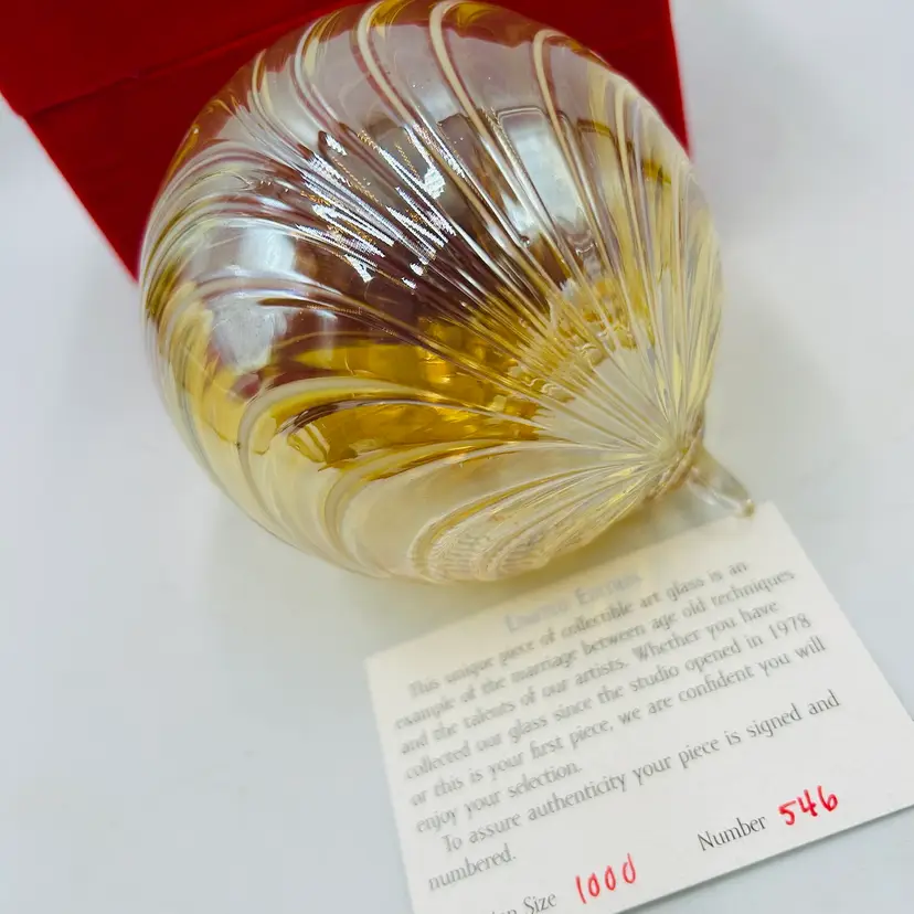Signed on the attached glass hanger loop area. Number 546/1000 pieces made