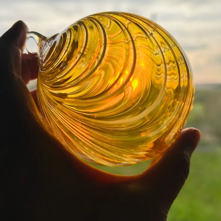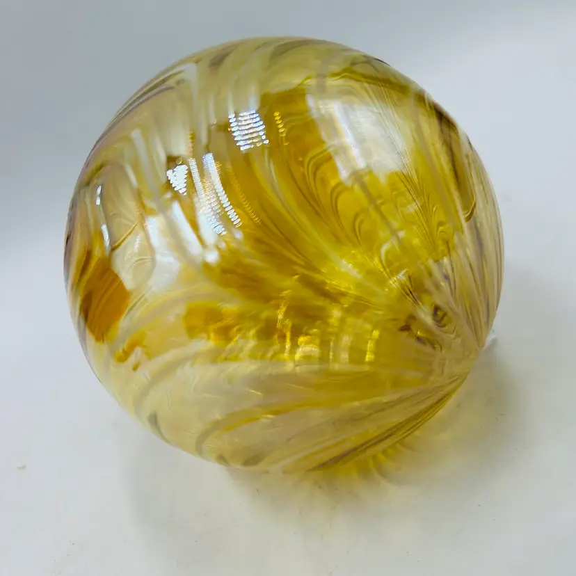 Beautiful champagne yellow with a white opaline drape pattern and an iridescent sheen overlay