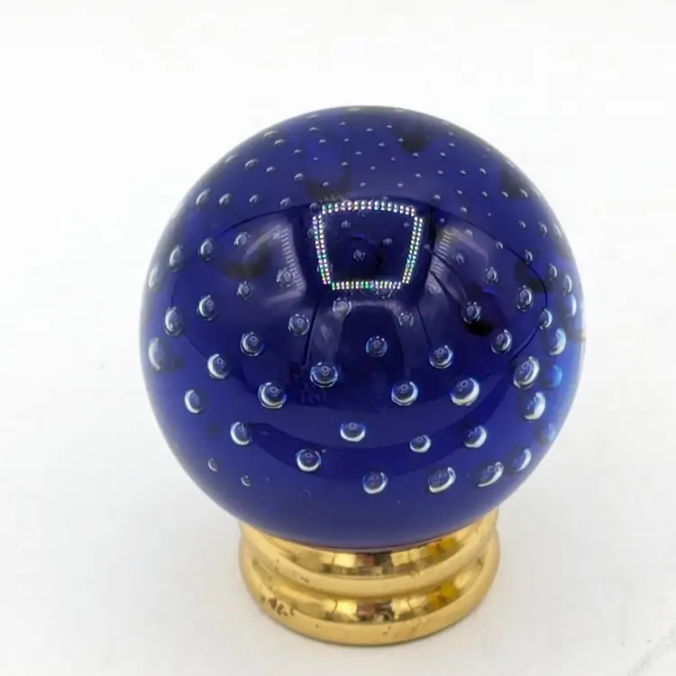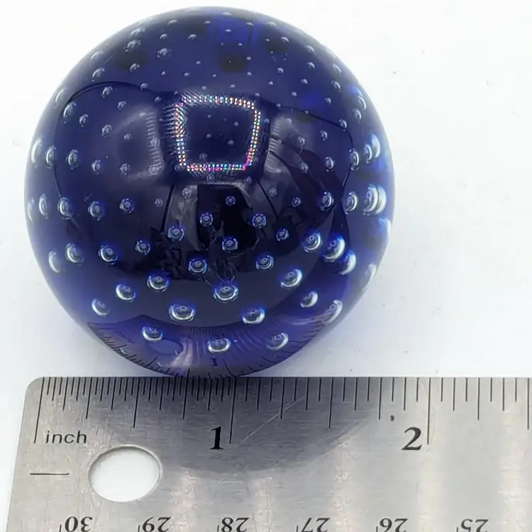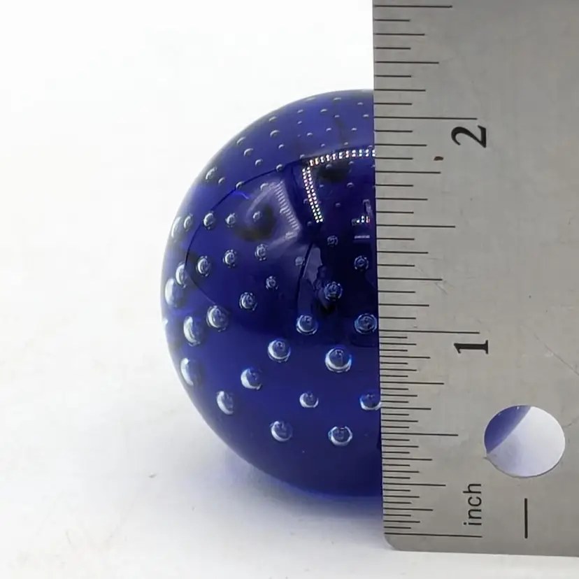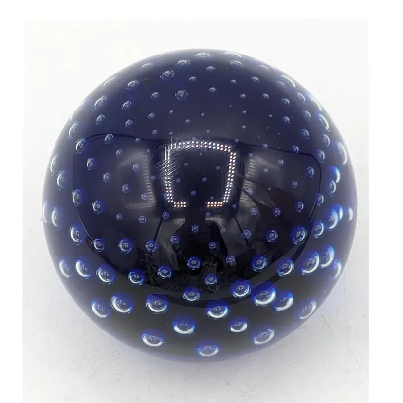 Glass Eye Studio Cobalt Blue Round Paperweight, Controlled Bubble, Home Décor, Glass Eye Studio Collectible Paperweight, No Chips Or Cracks