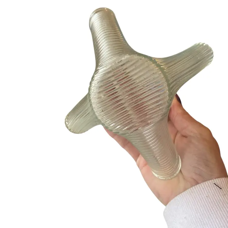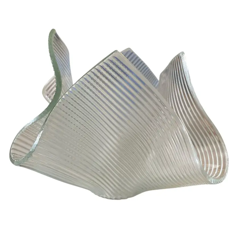 glass handkerchief vase with a ribbed texture. Vintage 6in wide 4.5tall