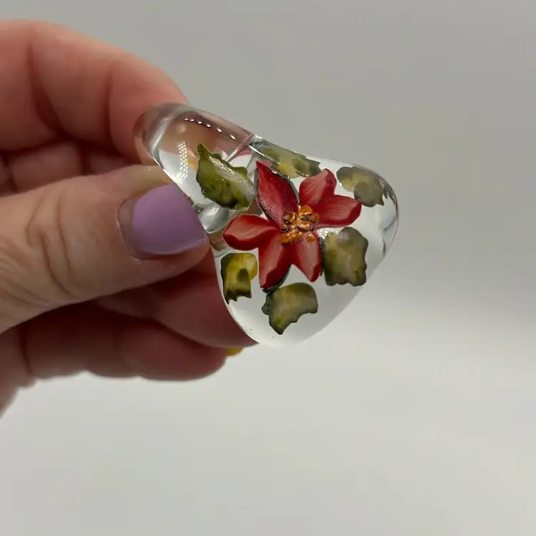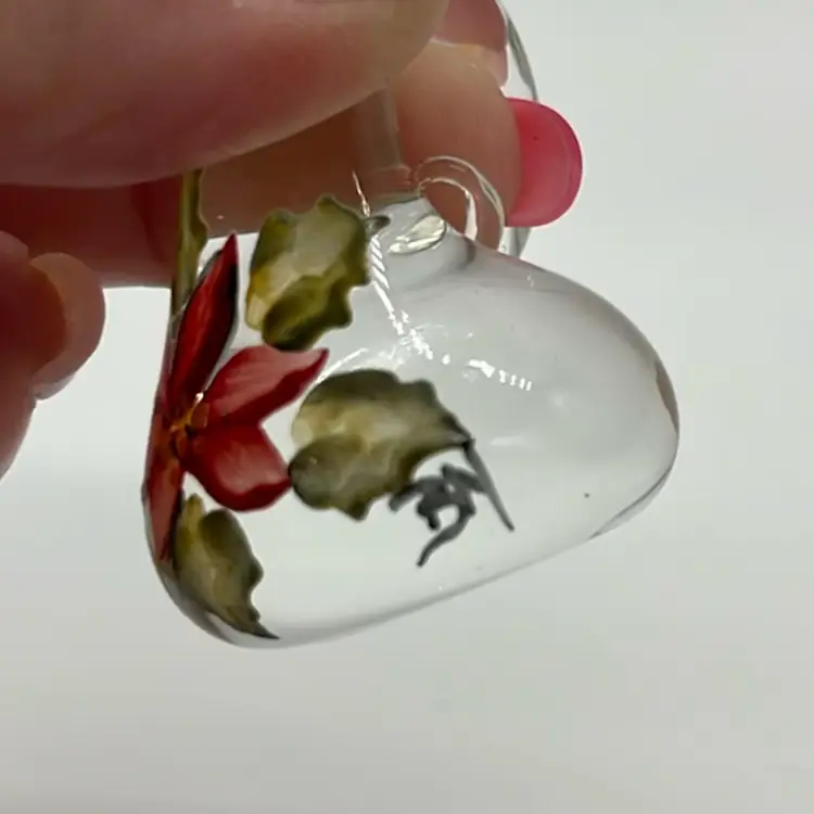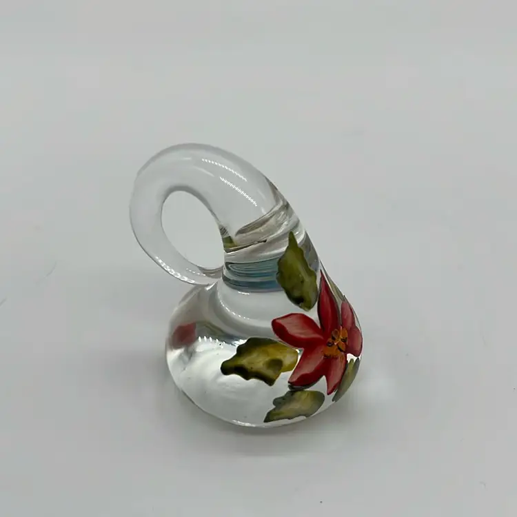 Adorable Glass Kiss with hand painted poinsettia signed BN. Very minor scratch (see pic) Approx: 1.5” h x 1.25” d