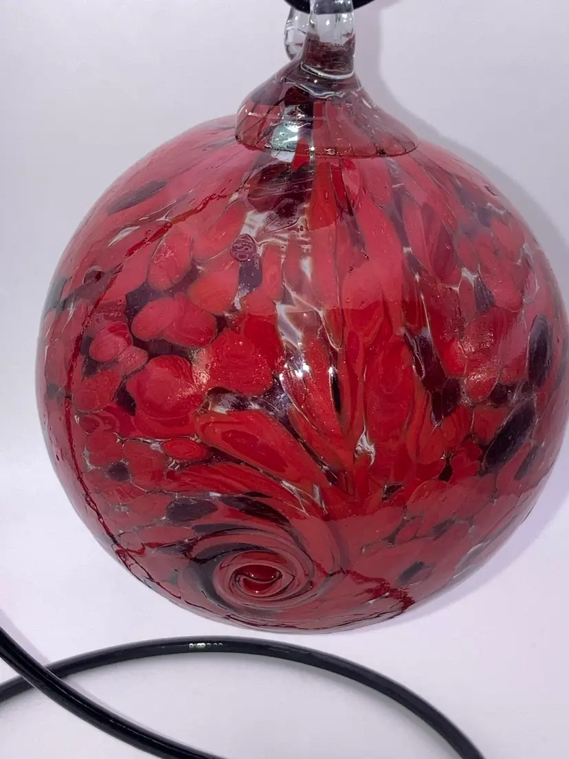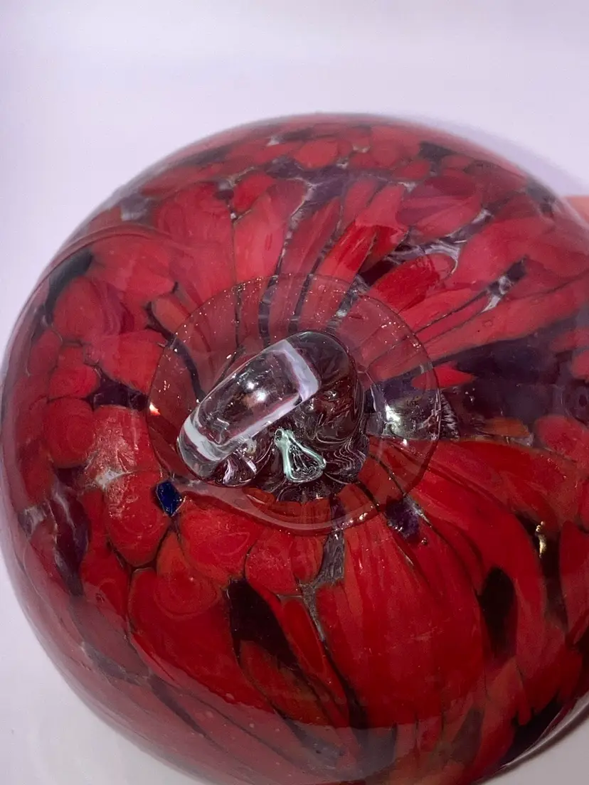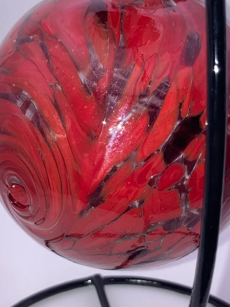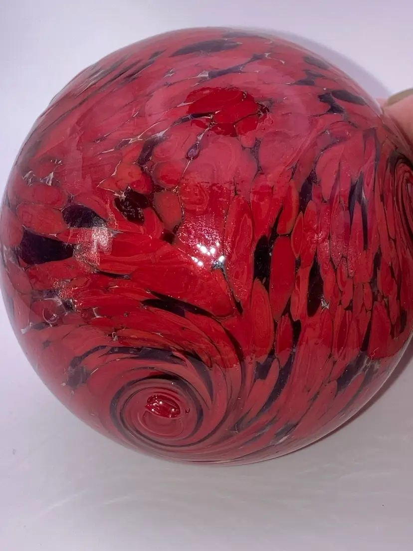 Glass Orb With Awesome Red Design! 4 3/4” Tall 3 1/2” Wide! Almost 1 Pound! Stand NOT Included! NEW to District? Enter code Michel42 into your wallet prior to your first ever purchase and save $5 off any $10 or more! Give me a Follow and I WILL Follow you back!