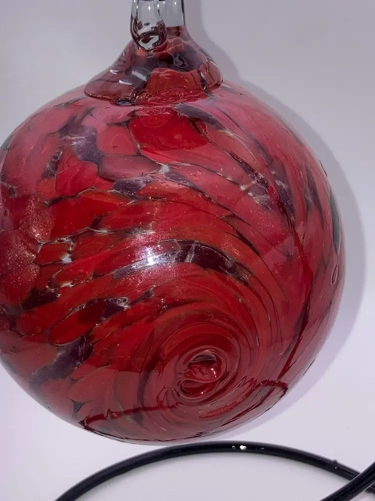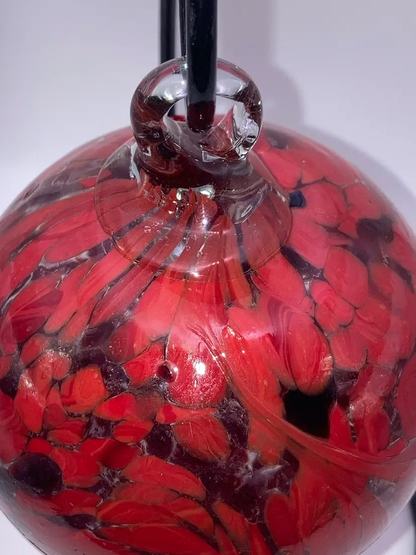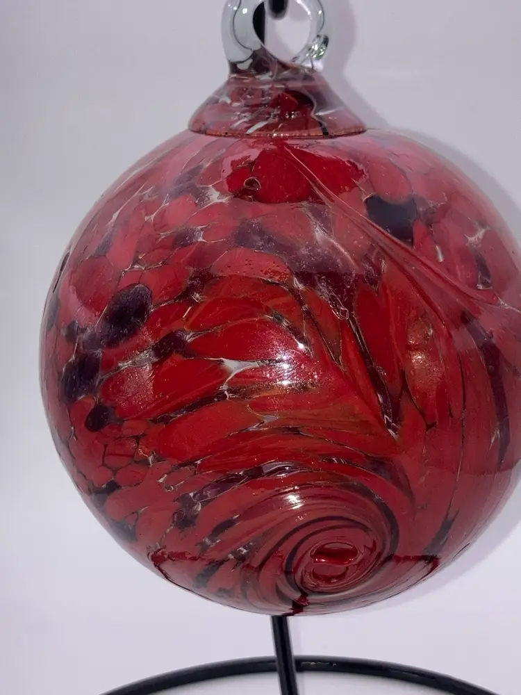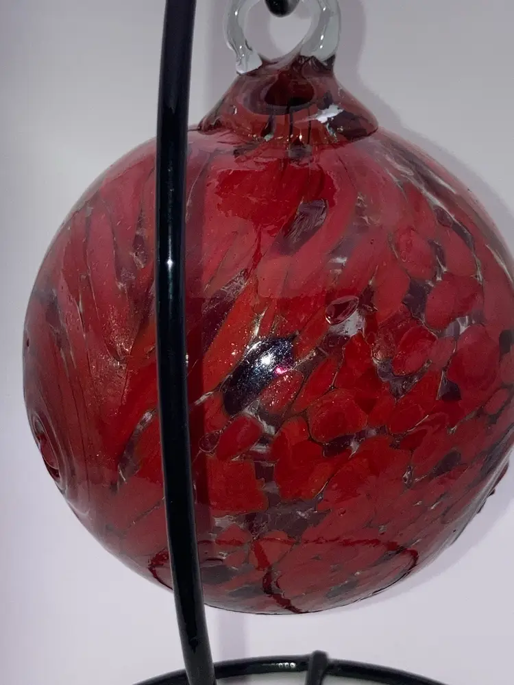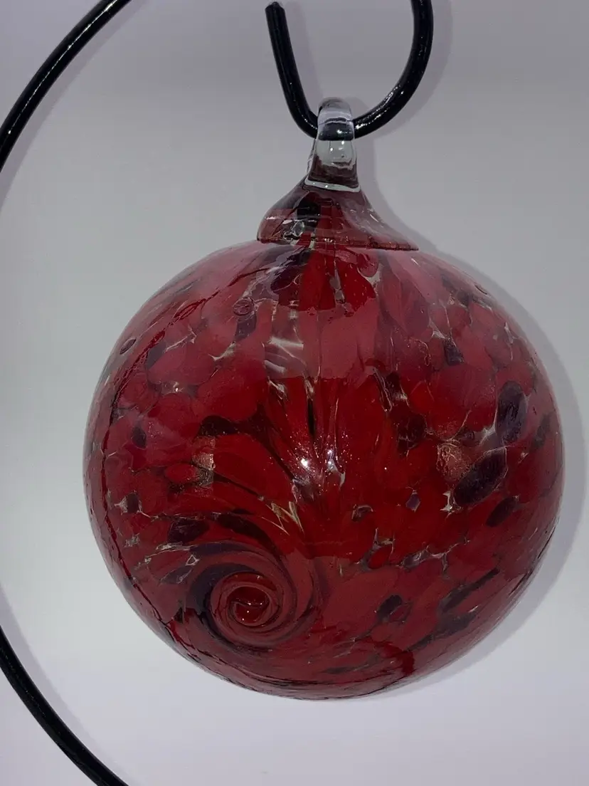 Glass Orb With Awesome Red Design! 4 3/4” Tall 3 1/2” Wide! Almost 1 Pound! Stand NOT Included! NEW to District? Enter code Michel42 into your wallet prior to your first ever purchase and save $5 off any $10 or more! Give me a Follow and I WILL Follow you back!
