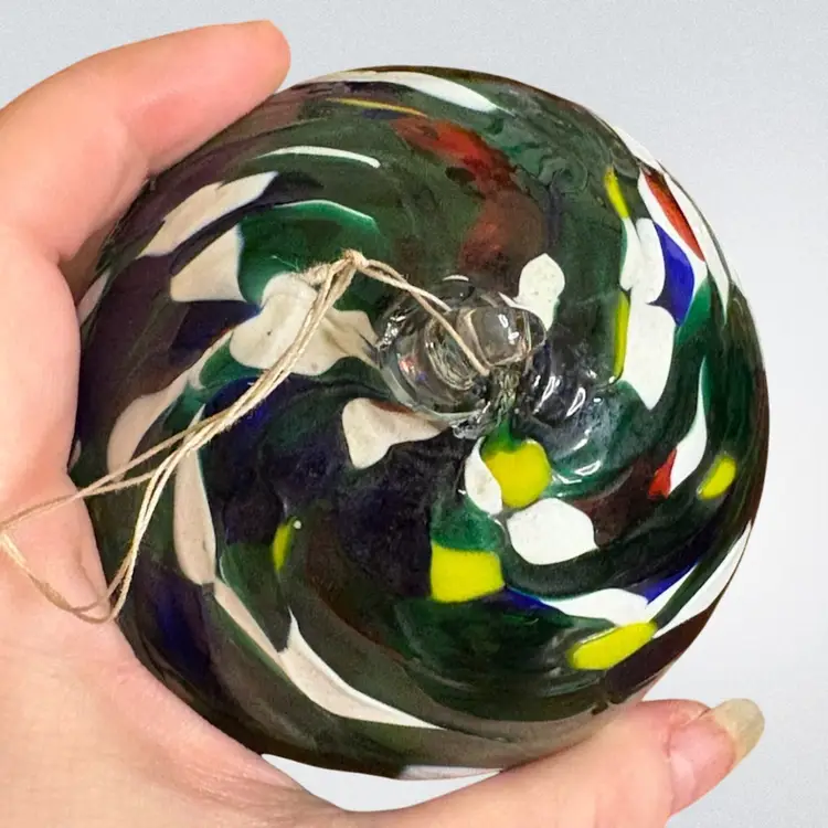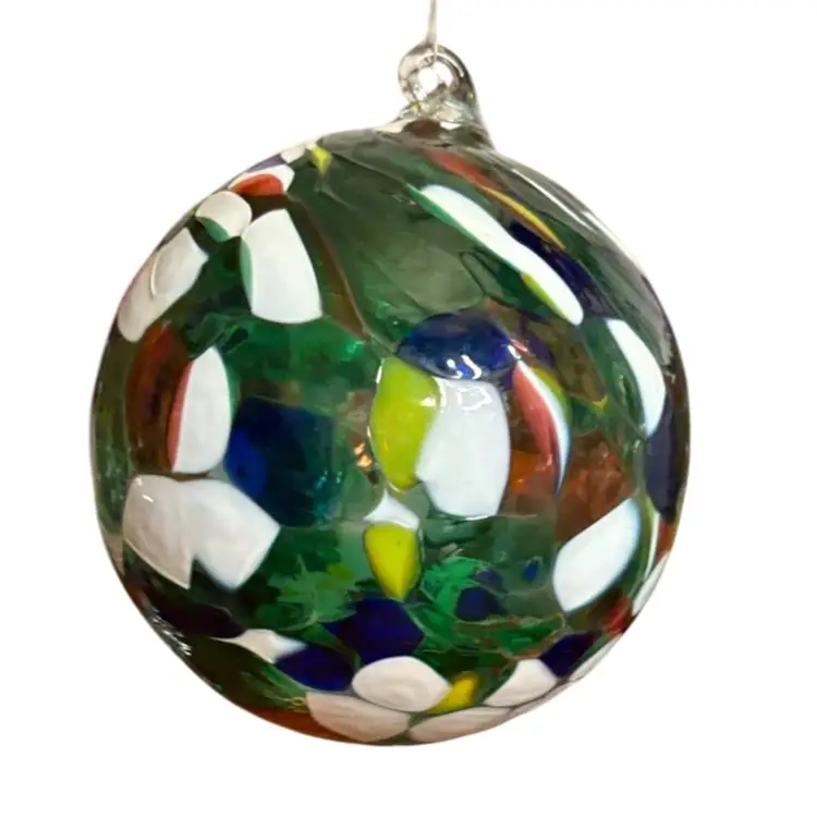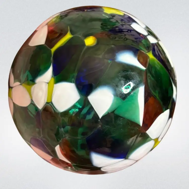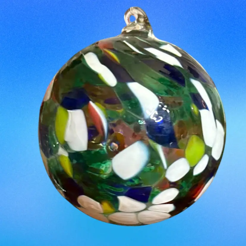 Nice glass orb Mostly green orb will blue, yellow and white confetti
