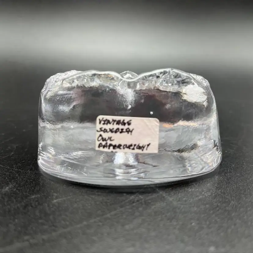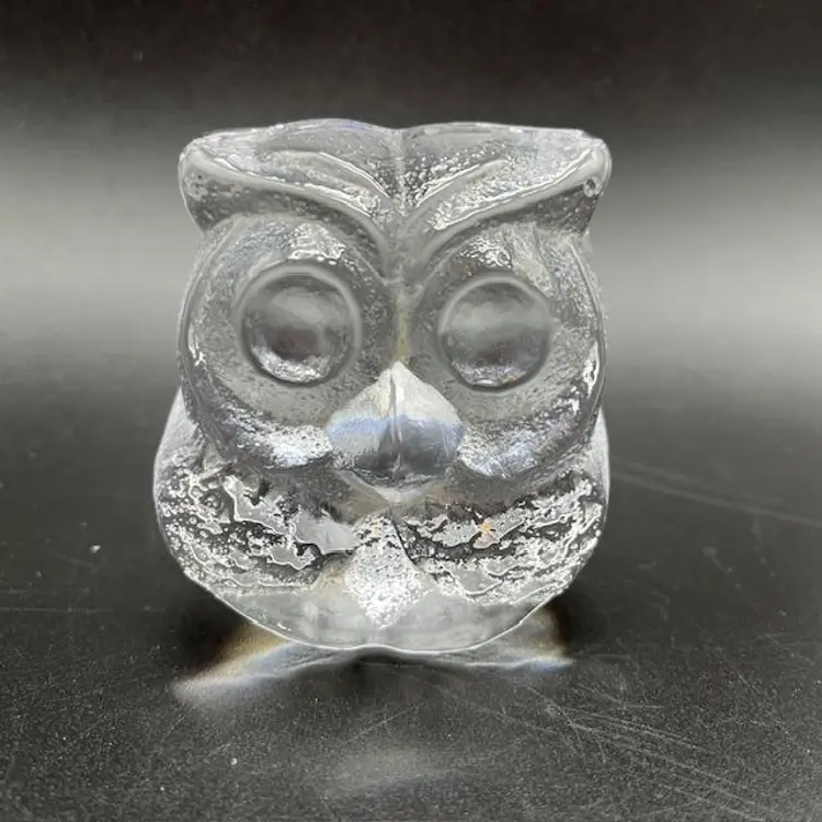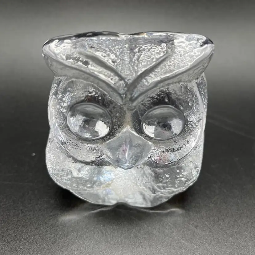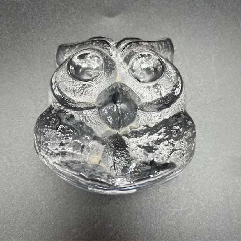 During research this guy came up as Blenko and Swedish Glass. Charming clear glass owl with intricate details. A delightful addition to any collection or as a whimsical decor piece.