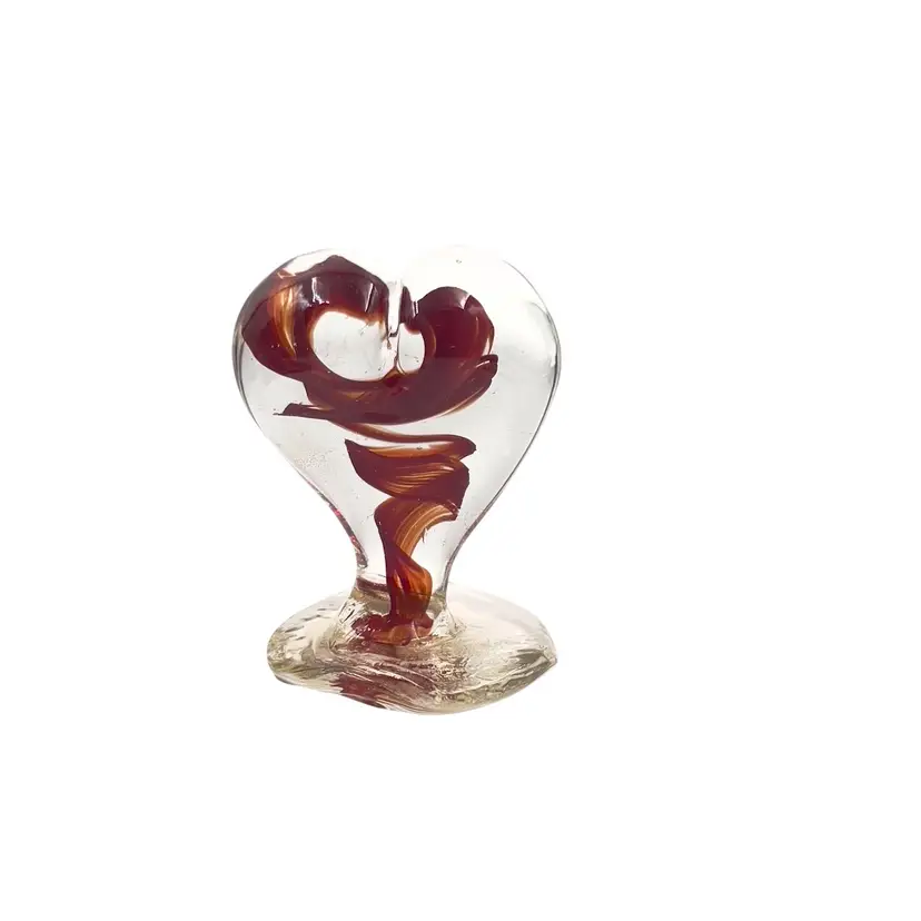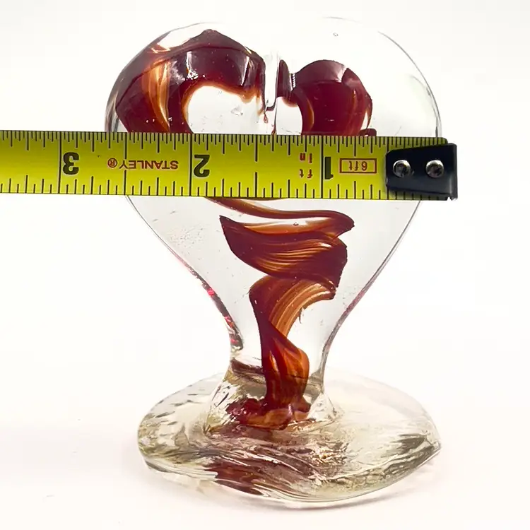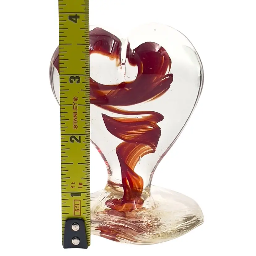 👉 3.75x 2.75” HEART Hand Shaped in Furnace 👉Clear w/ Red Swirl Heart Interior 👉No Chips or Cracks 👉 Review Photos for Best Condition Description 👉 Sold as Shown
