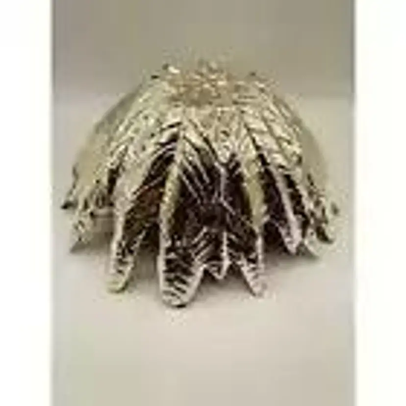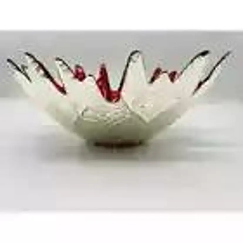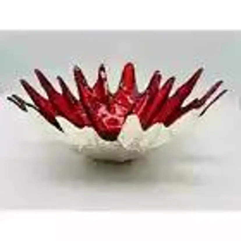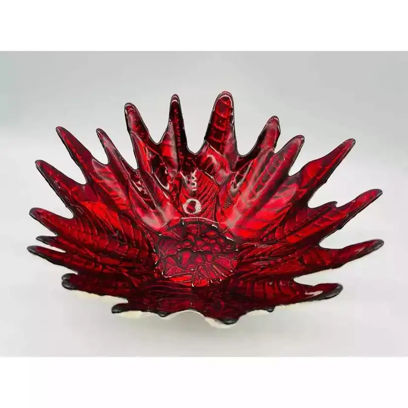BEAUTIFUL Ruby Red Poinsettia Starburst Akcam Turkish Large Bowl. Reverse Painted Silver Tone underside. Lovely age appropriate condition, no chips or cracks. Minor wear on the silver underside. 11.25 inches diameter and 4.75 inches deep. LOVELY CENTERPIECE.