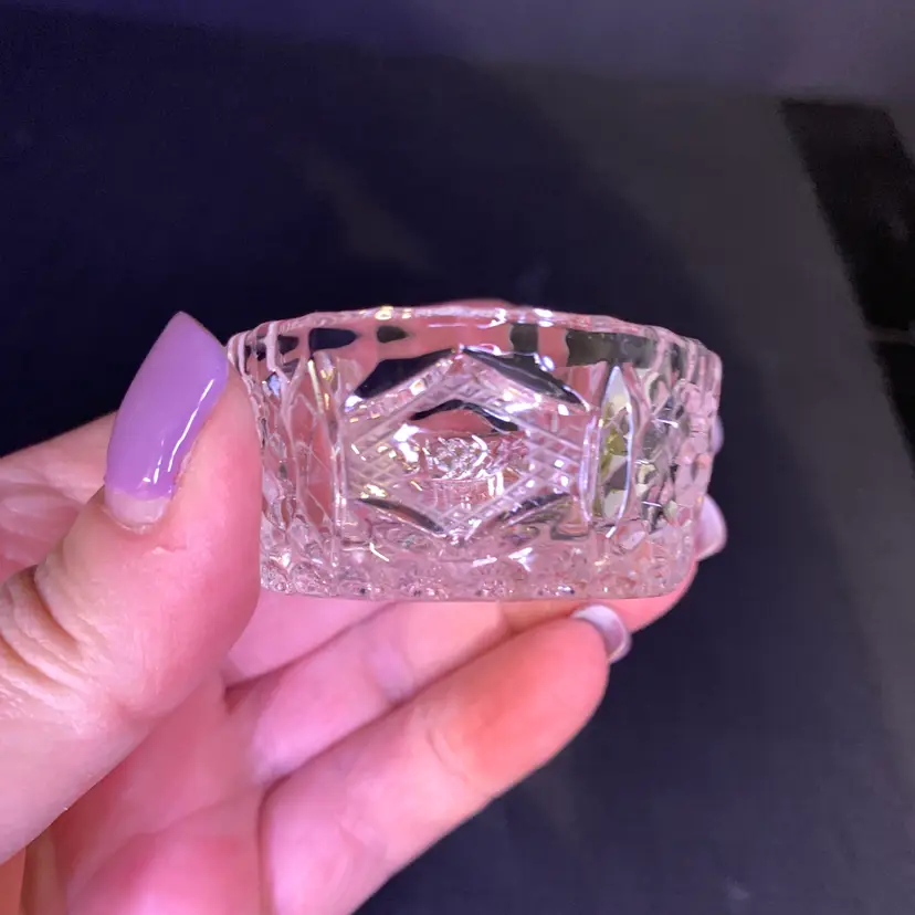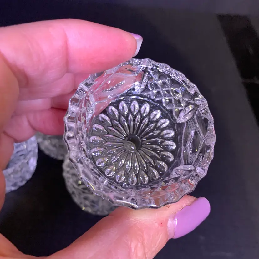 These are in excellent condition! I have 2 sets available. No chips or cracks. Each one measures 2 inches wide and 1 inch tall. Weighs 7 ounces. If the actual postage ends up being less than what you paid, you will be refunded for anything over one dollar.