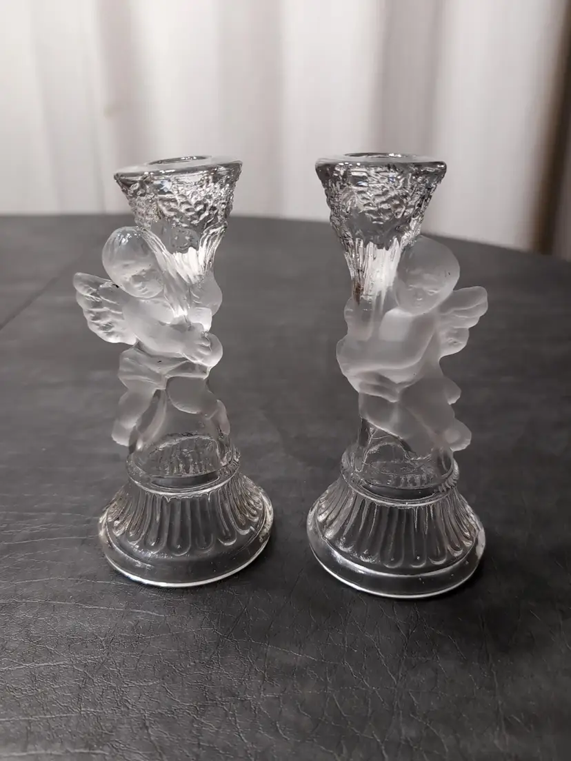 Glass Tapered Candle Holders Cherubs Frosted And Clear Glass