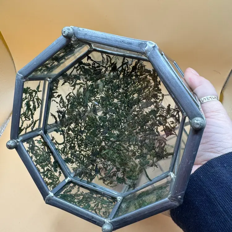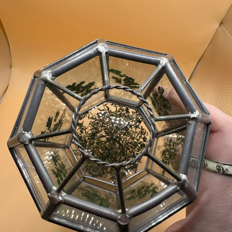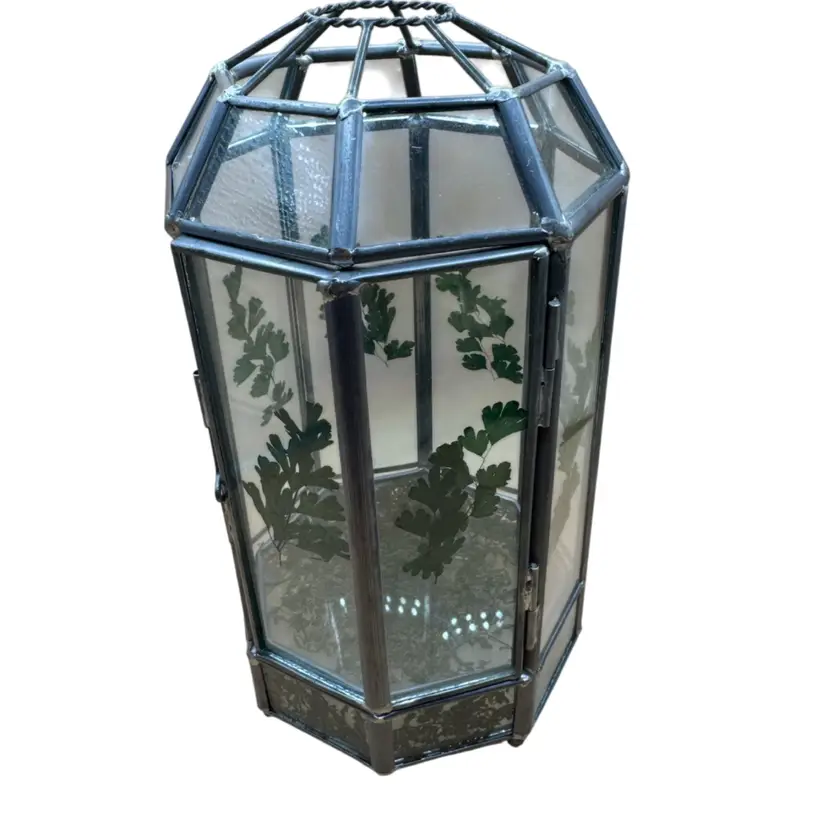 glass terrarium, commonly known as a Wardian case, designed for displaying plants and succulents