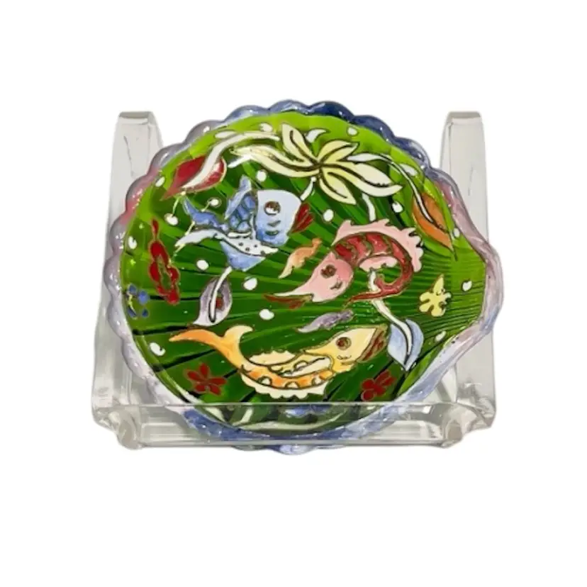 👉Fish Motif 👉Green Glass Shell Dish 👉Shipping Overages <$1 Refunded 👉No Chips or Cracks 👉 Review Photos for Best Condition Description 👉 Sold as Shown