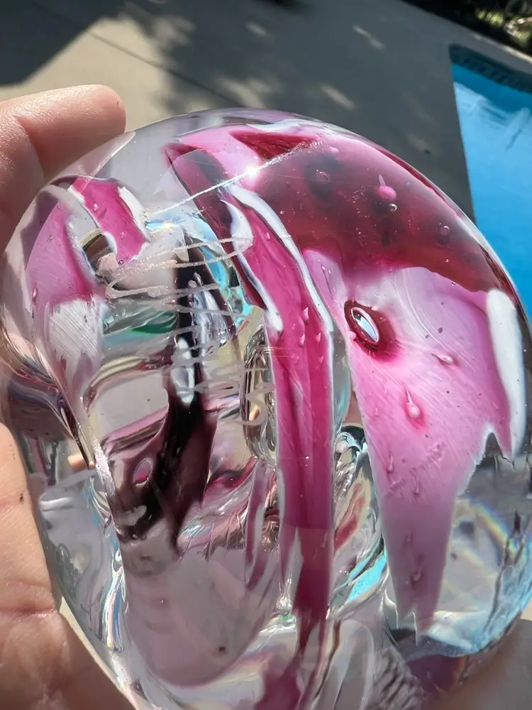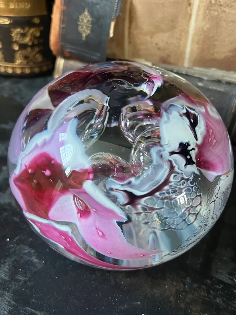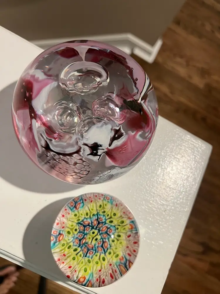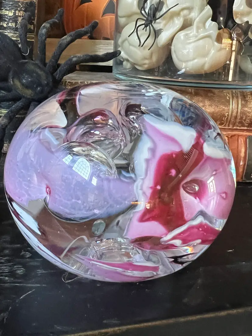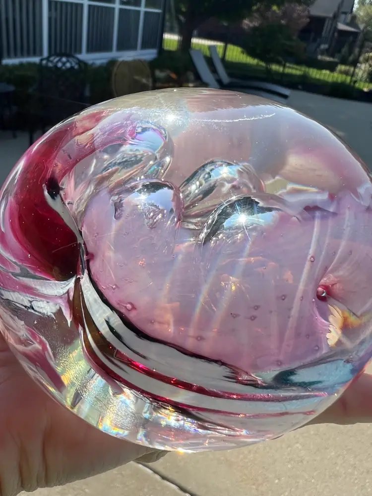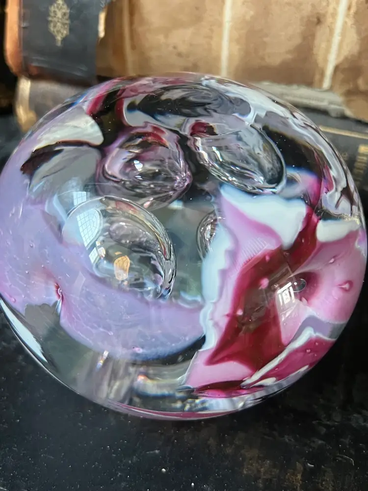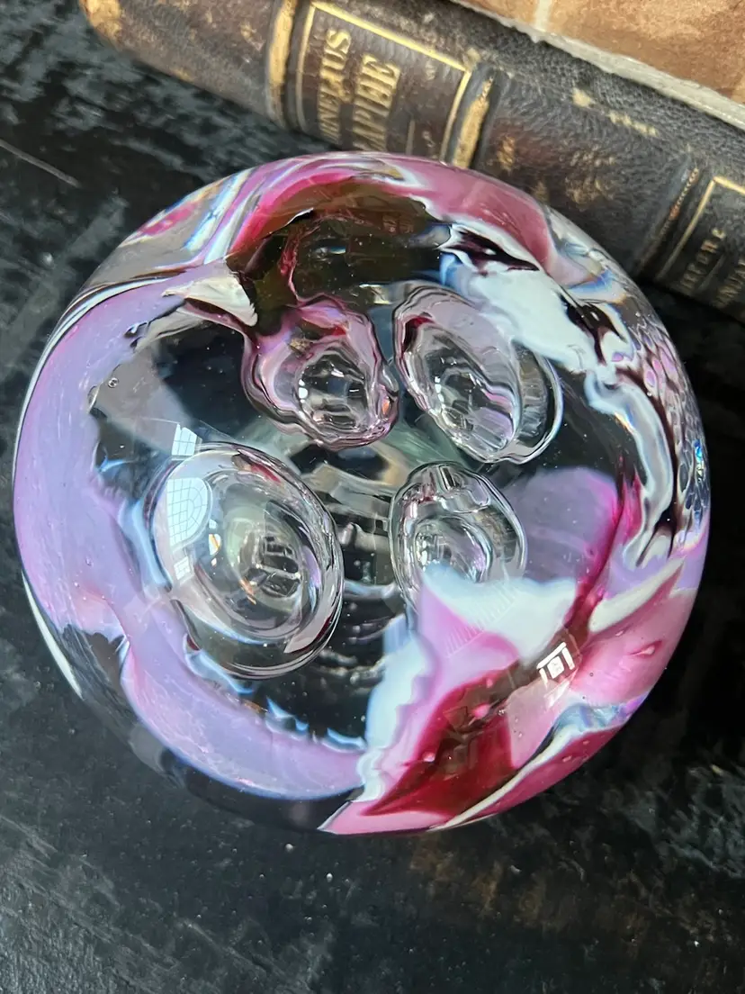 This big boy is in wonderful vintage condition with no chips or cracks. To the best of my research this is a brekkon weight. It is dated, signed and numbered which is typical of weights made at glasshouse. The last photo is for size reference only.