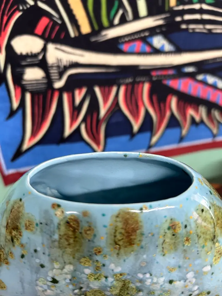 Absolutely stunning in person. Excellent condition. Vase is signed with makers mark.