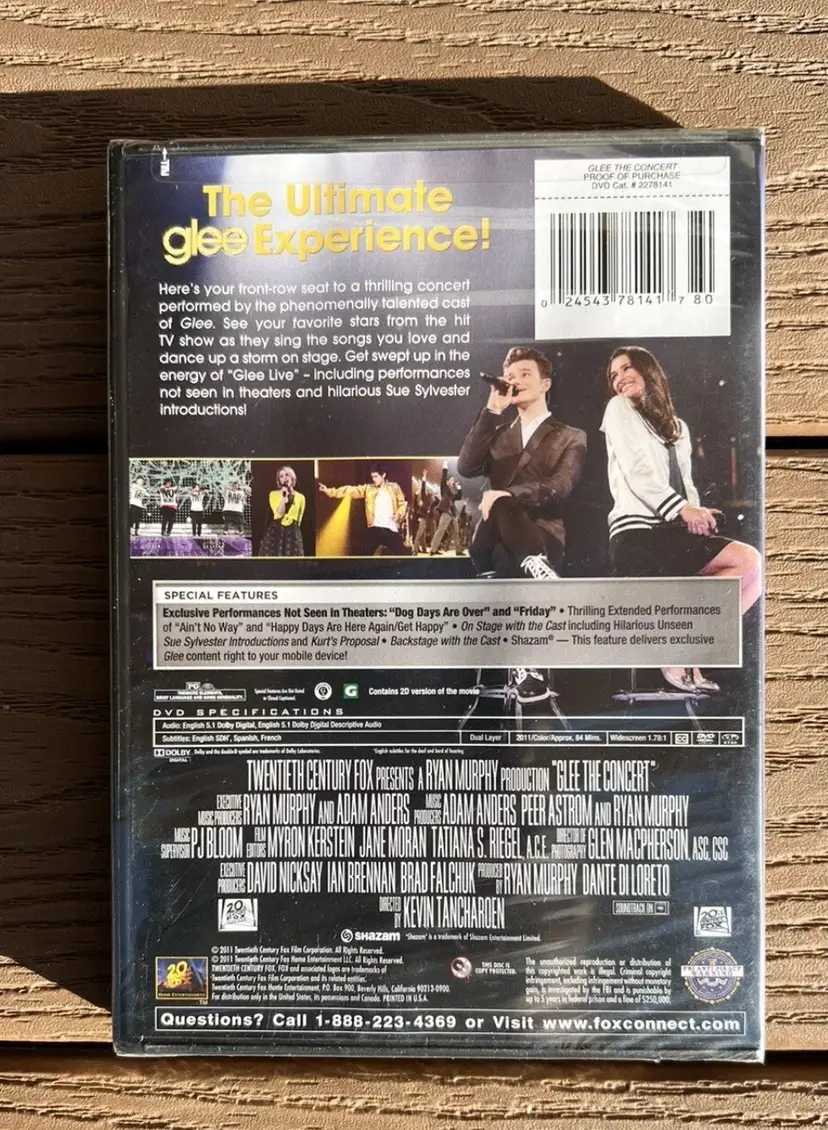 Experience the electrifying performances of the cast of Glee in their debut concert movie on DVD. This brand new and sealed item features additional scenes and is a must-have for fans of the hit TV show. Join Dianna Agron and Darren Criss as they take the stage with the rest of the talented cast and deliver a night of music and entertainment that will leave you wanting more.