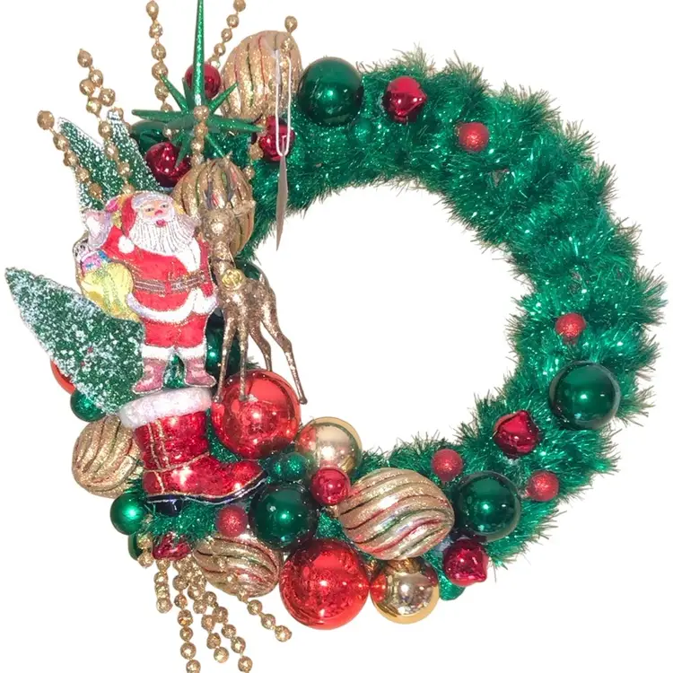 WOW! This one will draw your eye from every angle! Handmade assemblage wreath with vintage pretties and glitz. 18" diameter approx.