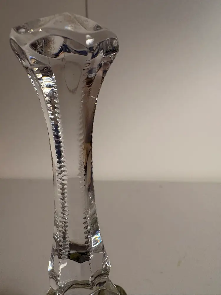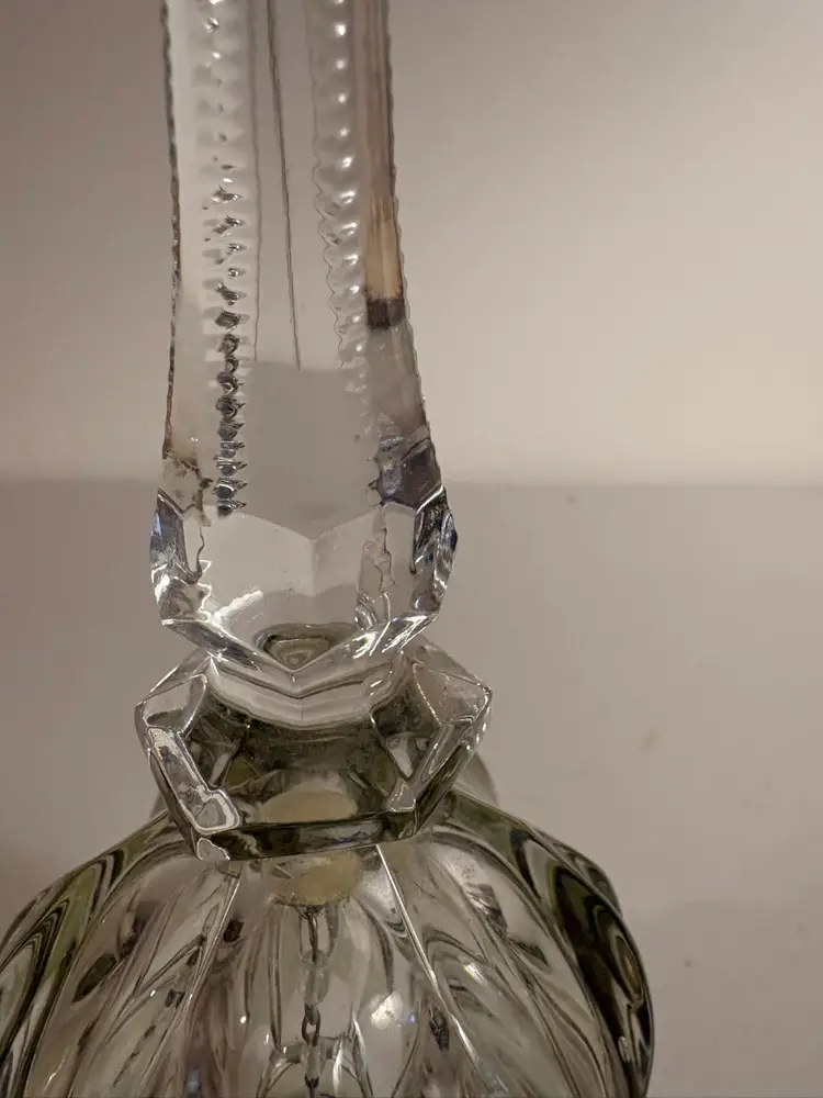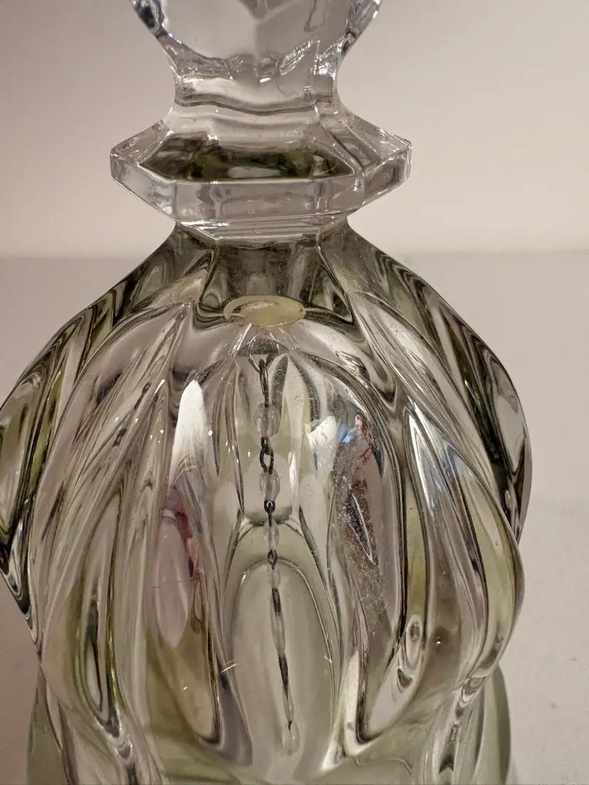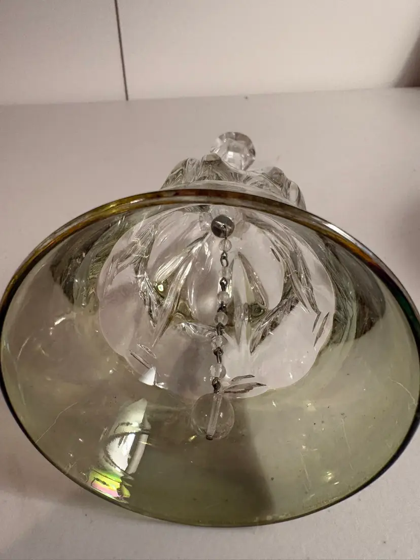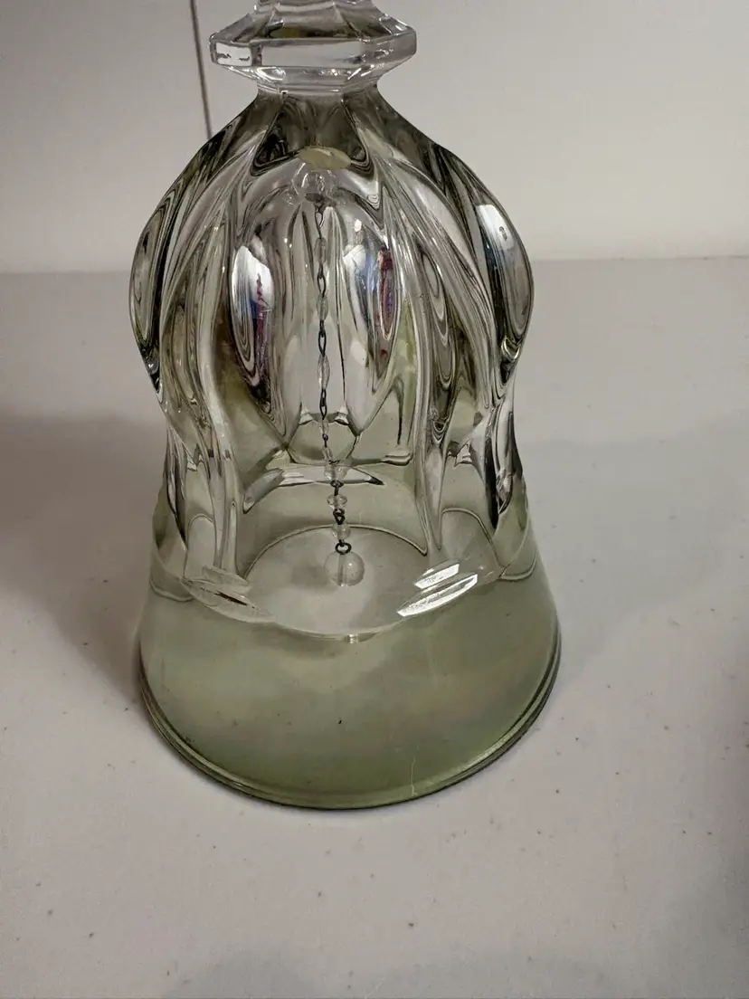 Lovely and sparkling Global Art hand cut lead crystal bell with light green wide band of colored glass. Attractive sleek design. Made in West Germany. Has clear glass clear clapper. 8” tall