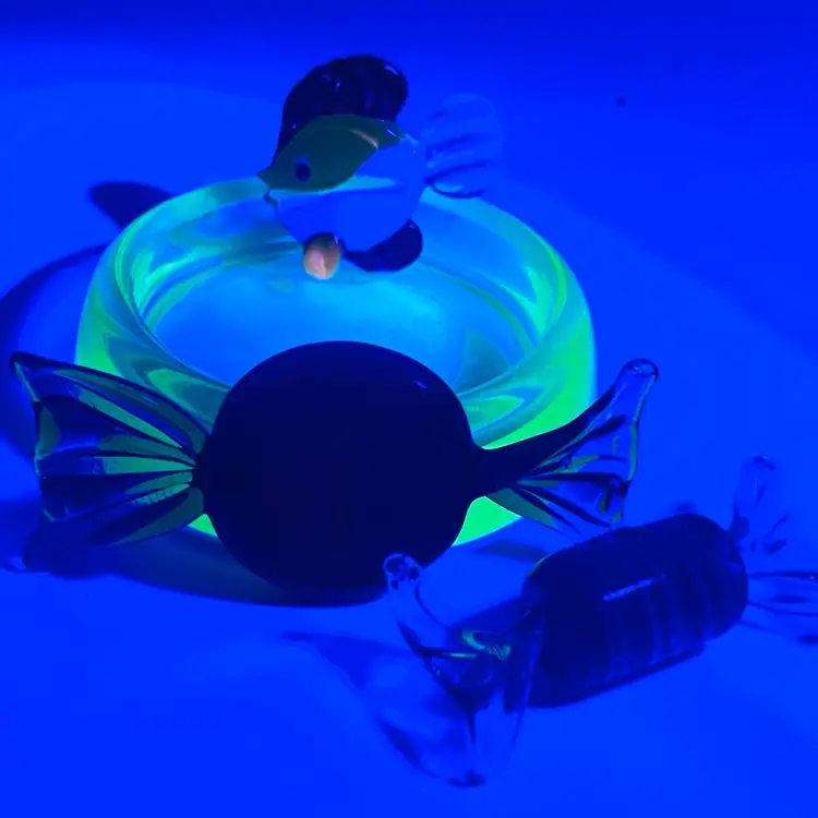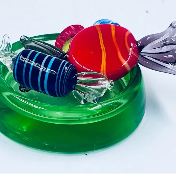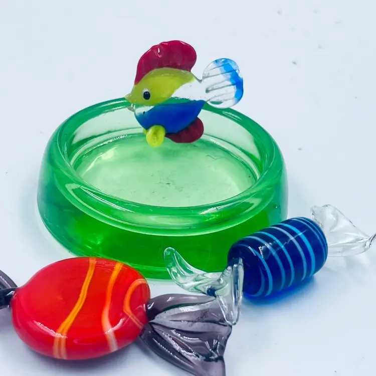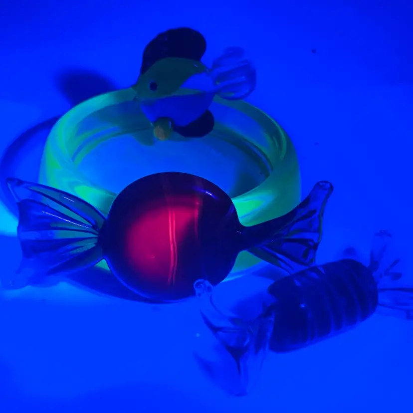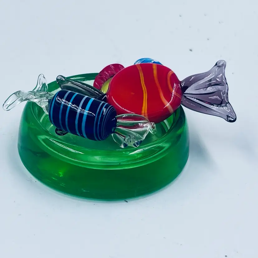 The container is either a coaster or a leg base and doesn’t it glow pretty? Included for you are a couple of glass candy pieces to enjoy as well