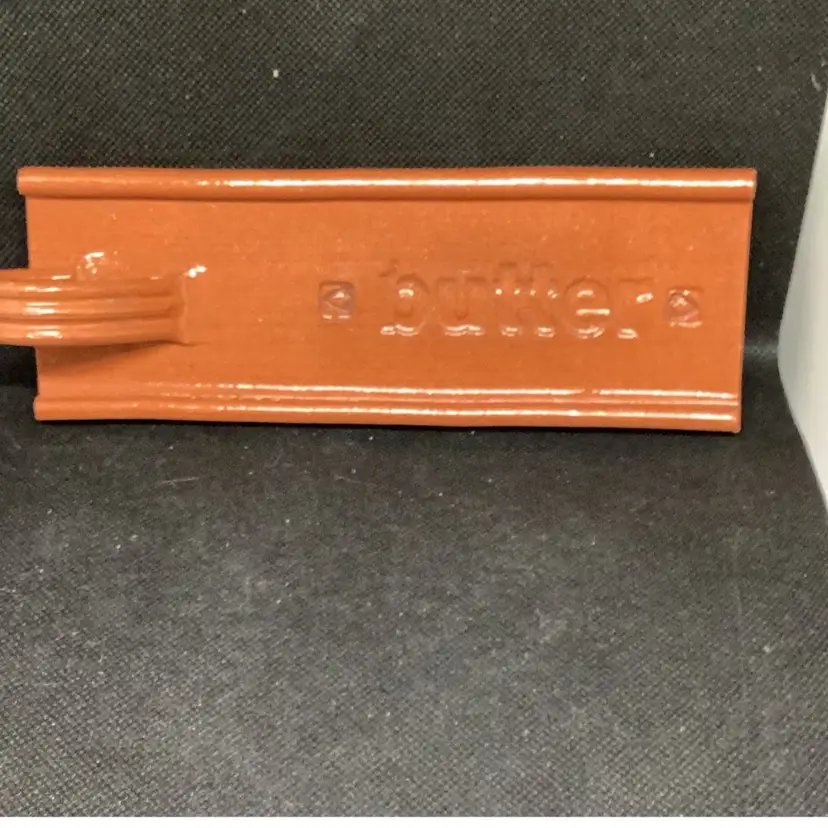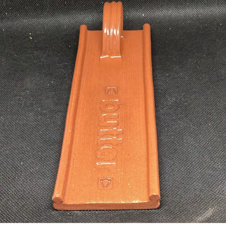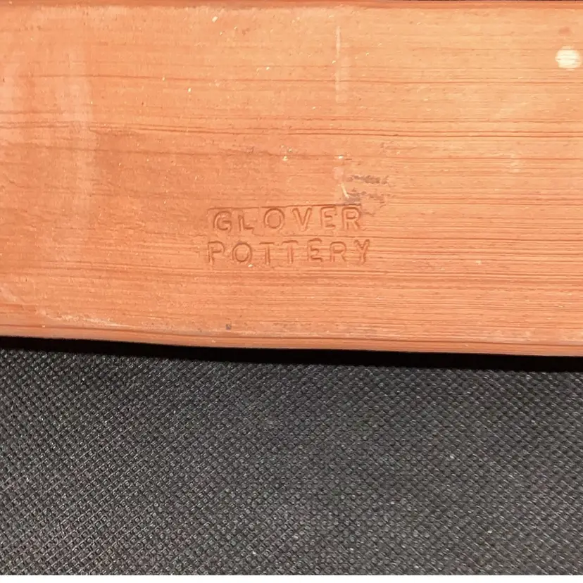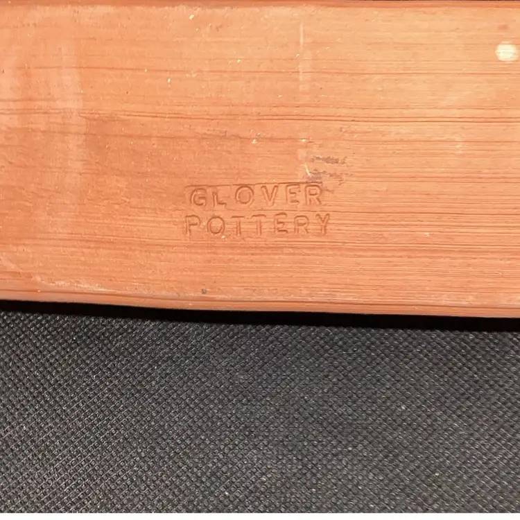 Glover pottery red clay butter dish signed on the bottom with a handle open. There’s no lid measures about 7 inches long by 3 1/2 inches wide if by chance the shipping is overpriced I do refund.