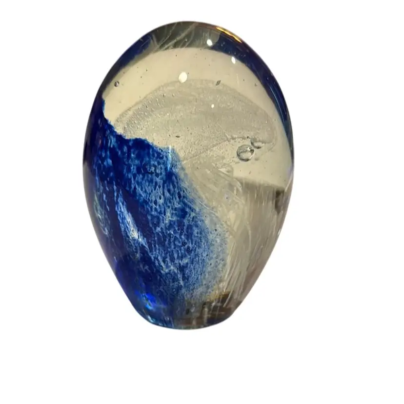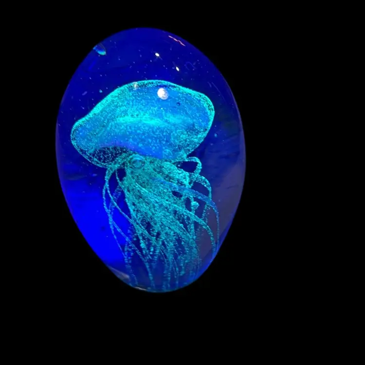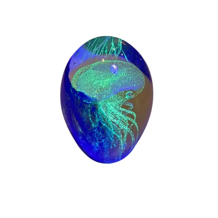Glow In The Dark Jellyfish Oblong Paperweight - Unique With Blue Spatter Background - 4.25” Tall