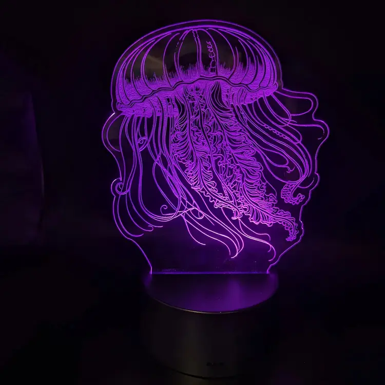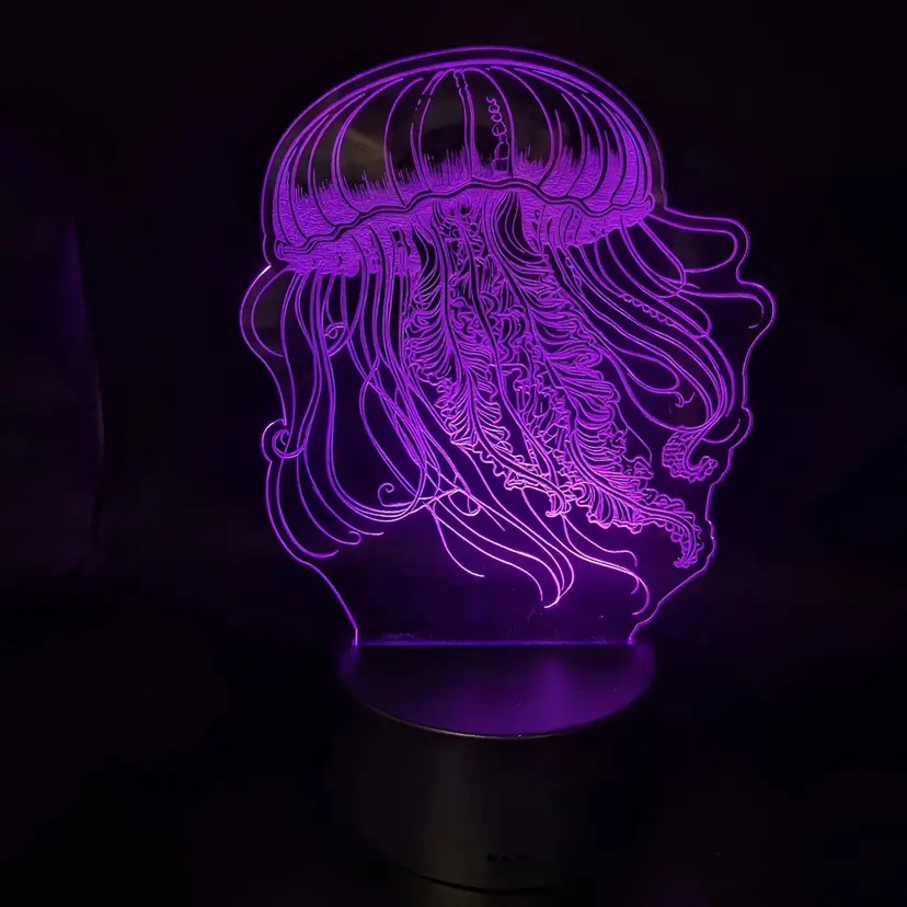 Dive into the depths of your imagination with this enchanting laser engraved acrylic insert for an edge lit LED night light. The intricate design showcases a graceful jellyfish, its tentacles flowing effortlessly through the water. The soft glow of the LED base illuminates the jellyfish's delicate details, creating a mesmerizing and calming ambiance. Perfect for adding a touch of oceanic wonder to your bedroom or living room, this insert will transport you to an underwater paradise every night.