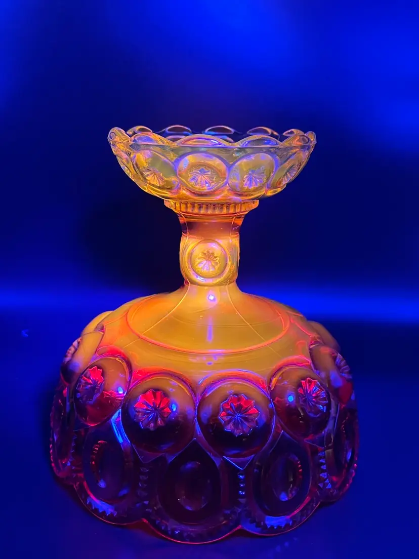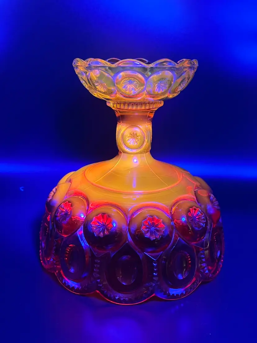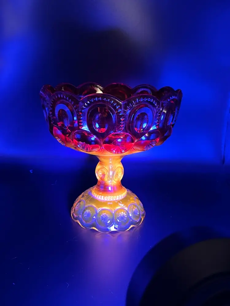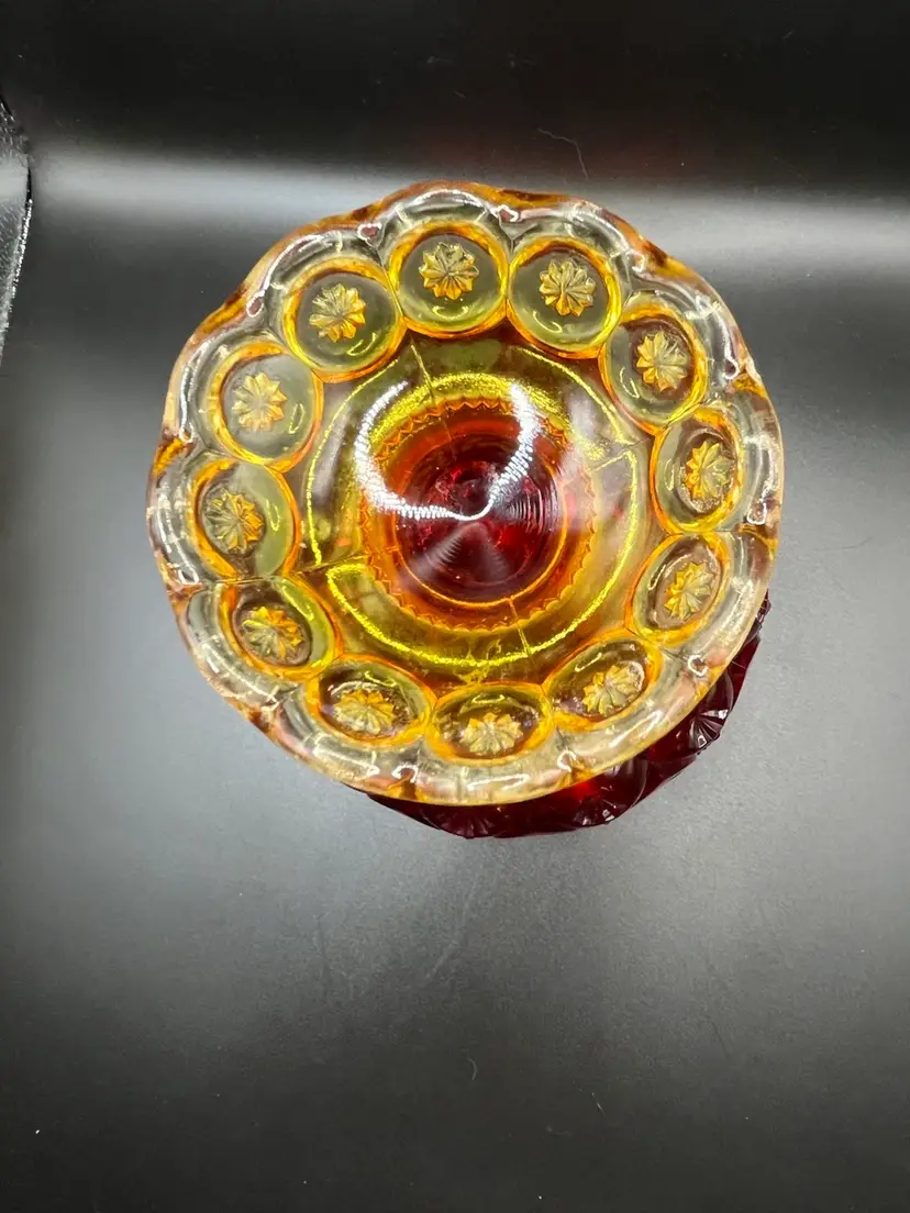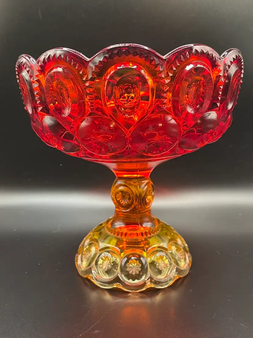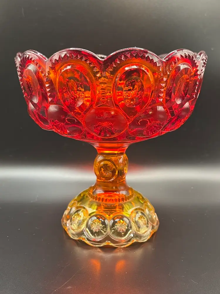 In great condition L. E. Smith moon and stars Amberina glows in beautiful condition.