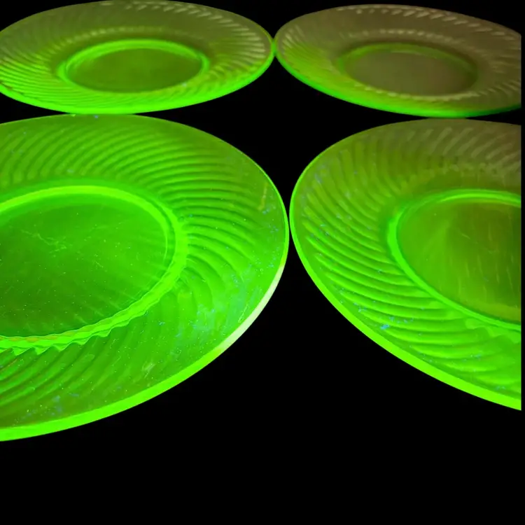 Approx. 8” GLOW!!! 💚 Vintage Green Spiral Depression Plates Uranium Glass Salad/Dessert/Luncheon Plates