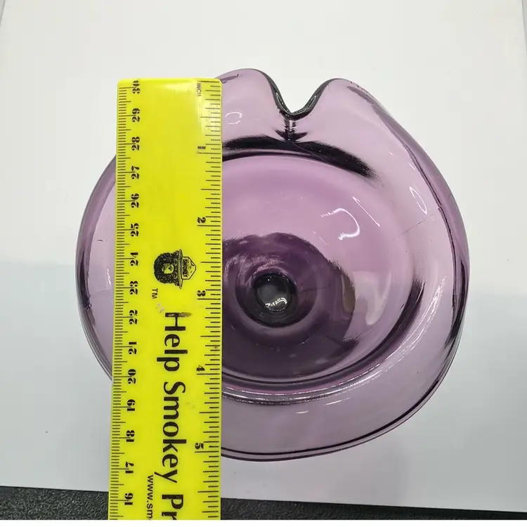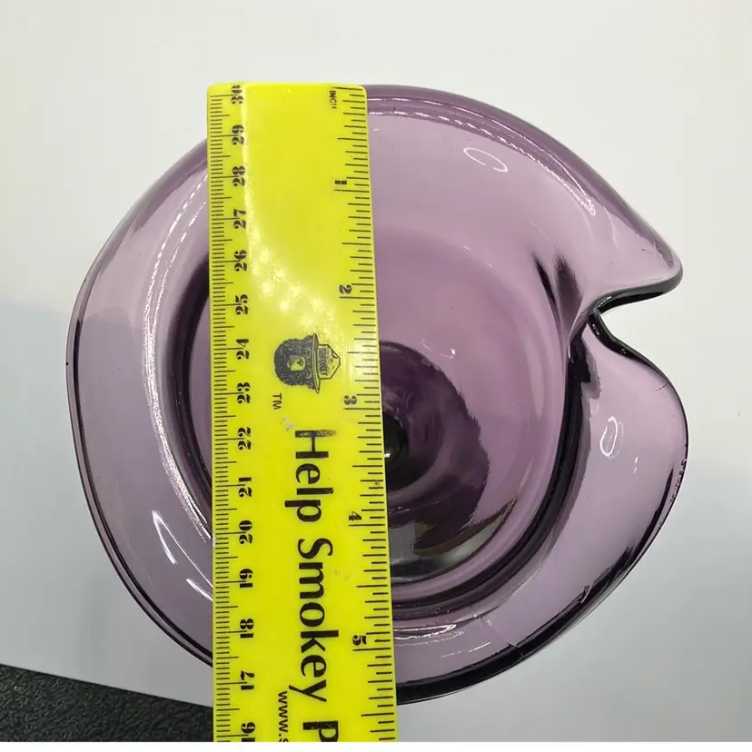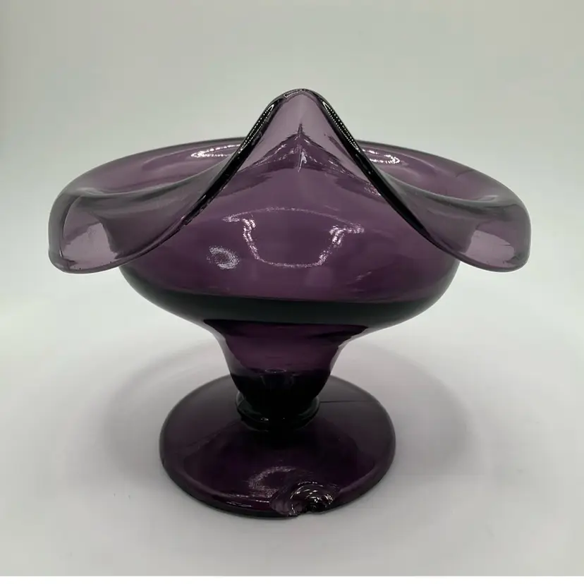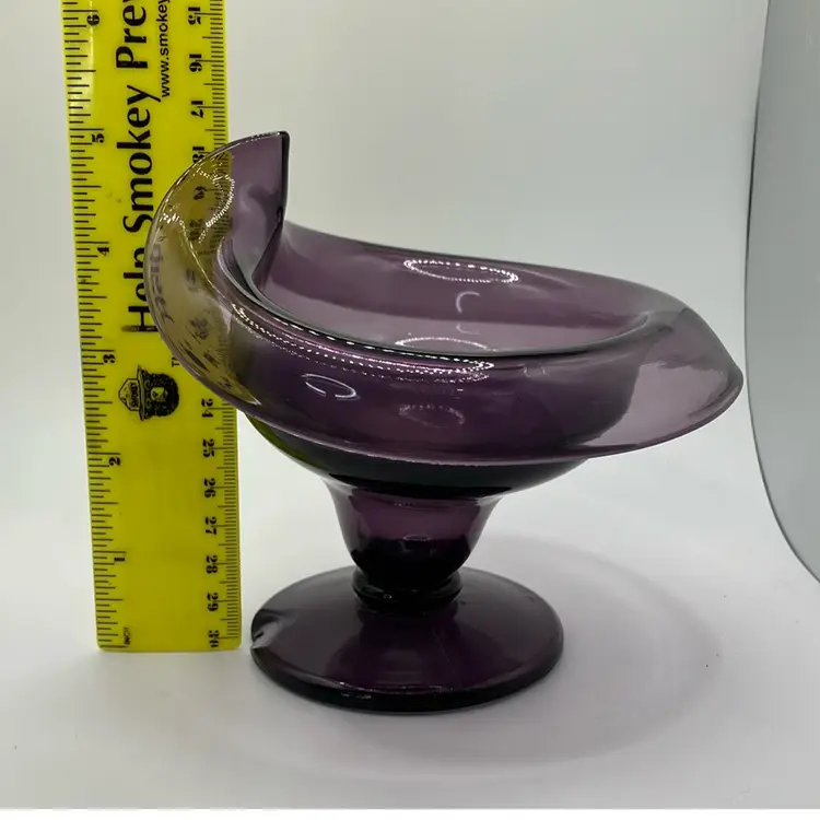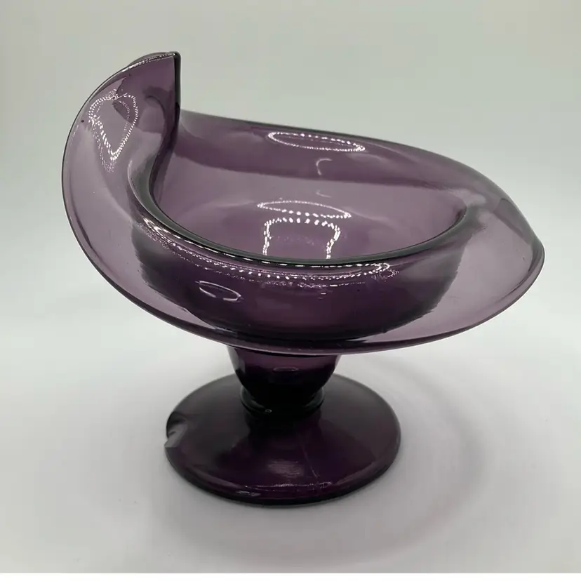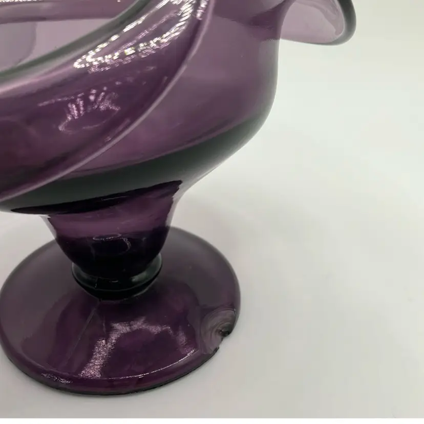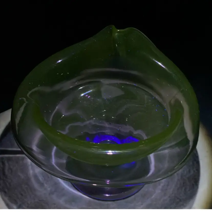 Has a chip on the base in the back. Glows green. Great trinket or candy dish.