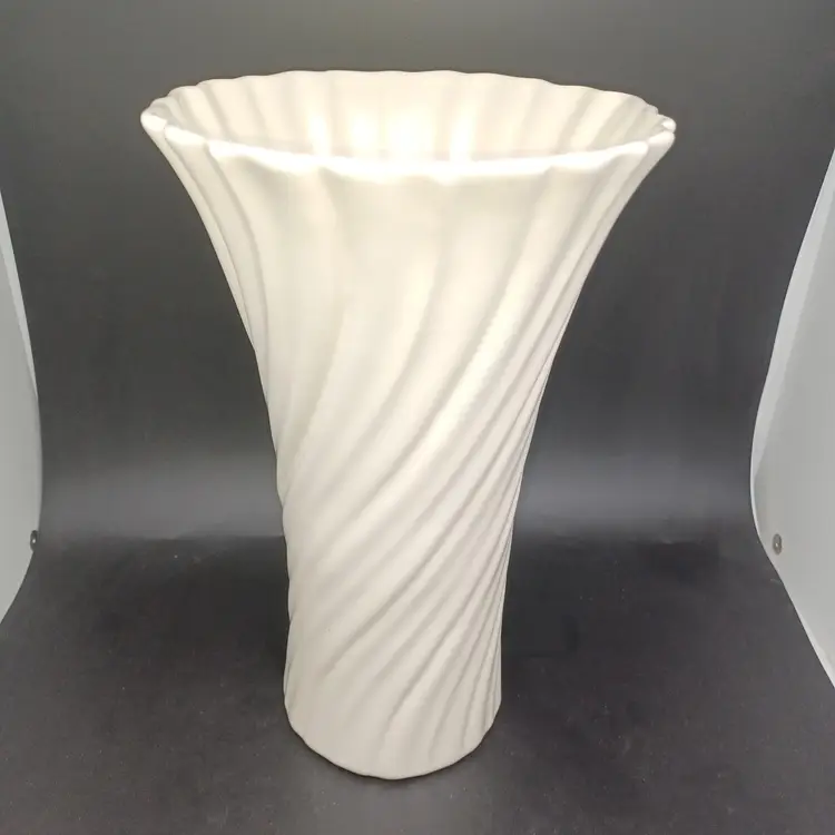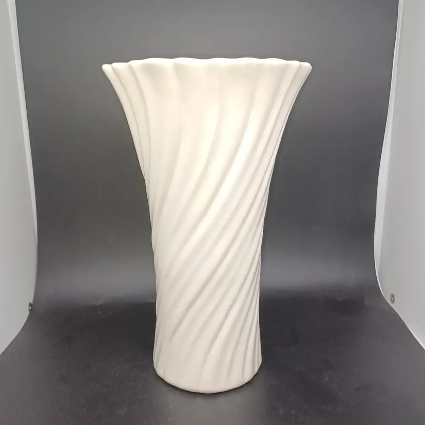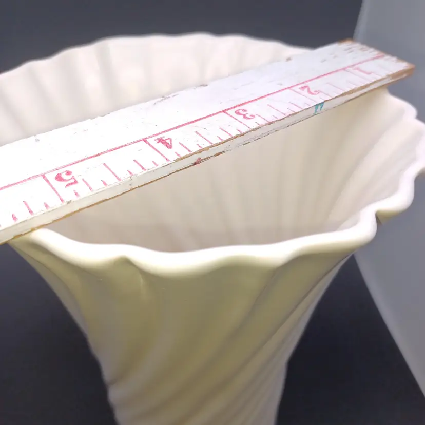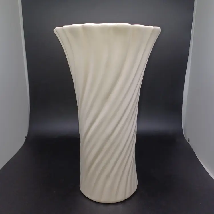 GMB Franciscan Coronado Swirl Footed Vase Catalina Pottery 1934-38 Beautiful off-white Gladding McBean's swirl Vase in excellent vintage condition. No chip's cracks- does have a few tiny.Interior marks that do not detract from use or Display measures 9 3/4 inches tall. Please see all pictures as they are the best description. All items from a smoke-free home with pets experienced fragile shipper.