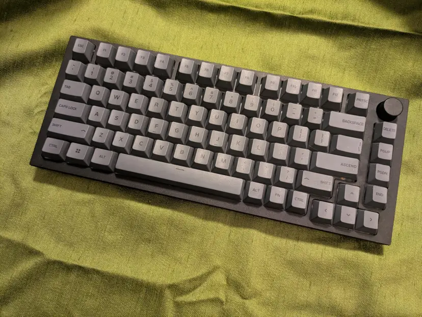 I know that the Glorious GMMK Pro keyboard has gotten a bad rap, but I took the GMMK Pro Black keyboard and I upgraded the foams that came with it and went with some KiiBOOM Jacaranda switches, which I hand lubed. Combined with the Glorious Black Ash keycaps and it came out super thocky. I will be including the original aluminum plate and the installed PC Plate. Also this includes the entire Black Ash keycap set, not just the ones installed in this keyboard.