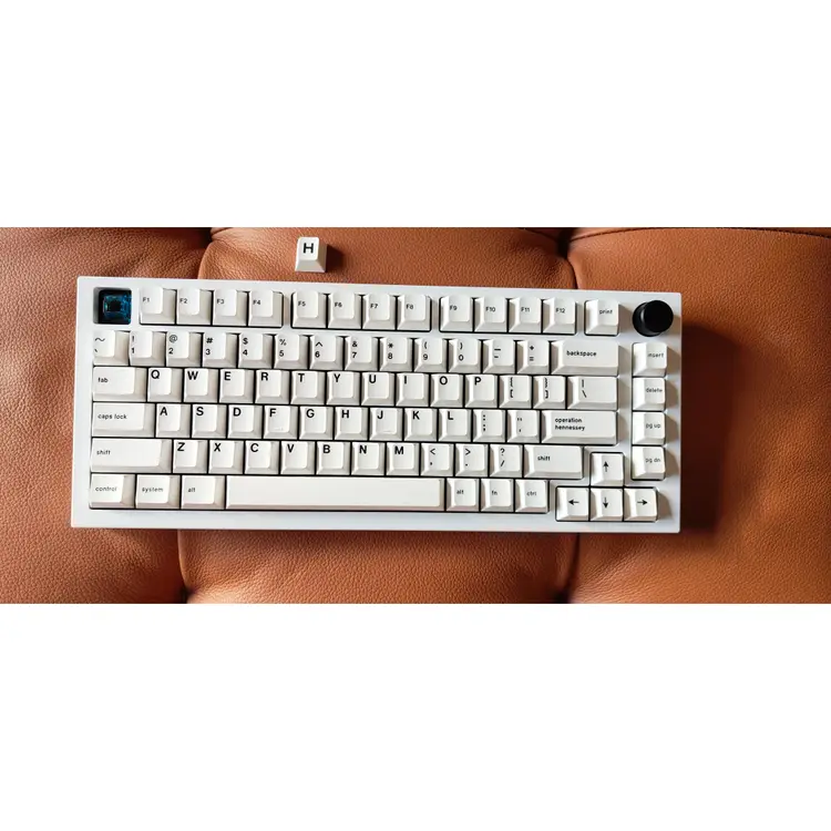 White top, AVX Works FR4 plate, White Flex Kit bottom, black knob, Hotswap PCB JWK Prince Switches [Lubed, heavy tactile] GMK Hennessy Keycaps