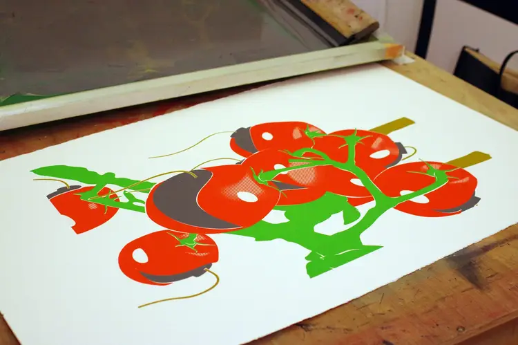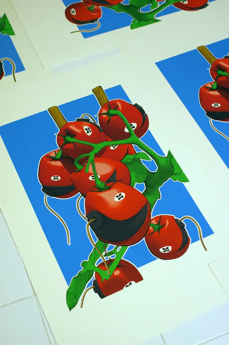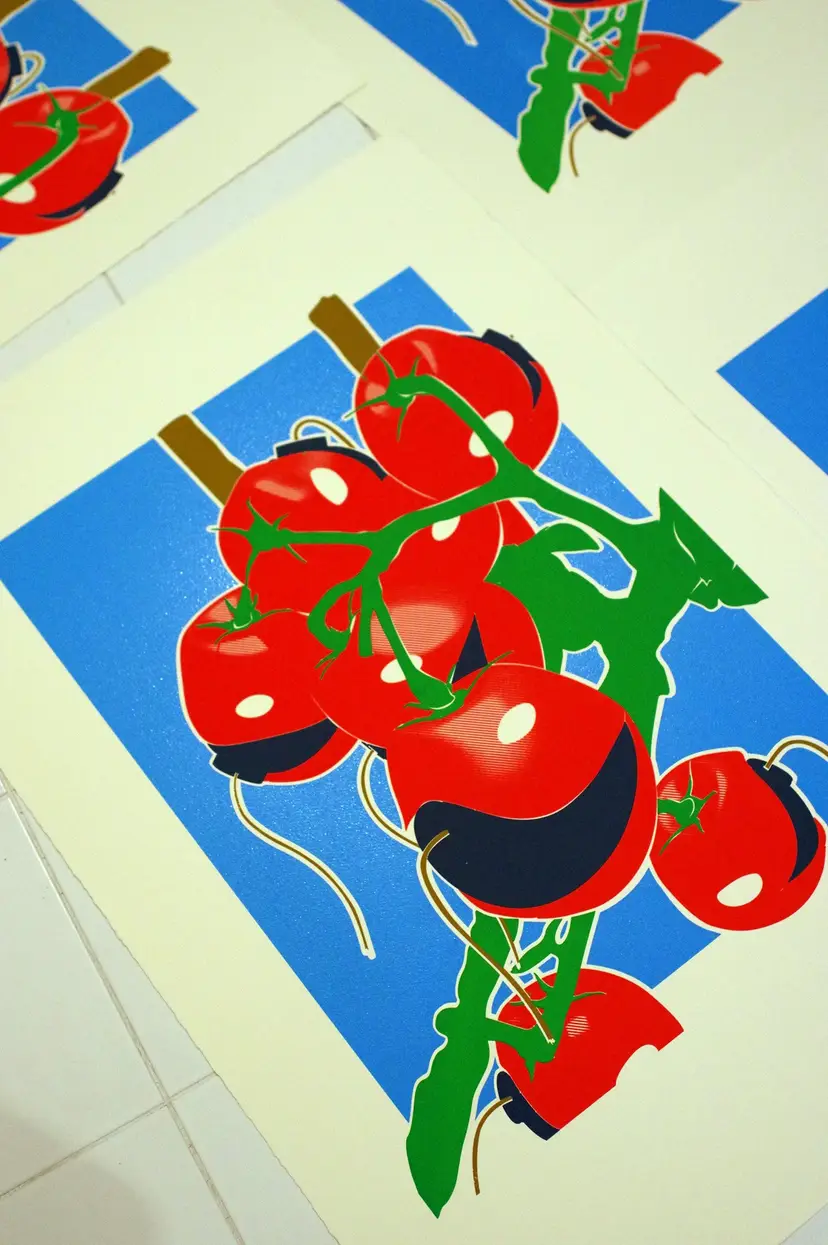 "GMNO Tomatoes" 2017 Hand pulled, 2 color silkscreen print on 250gsm acid free watercolor paper.
