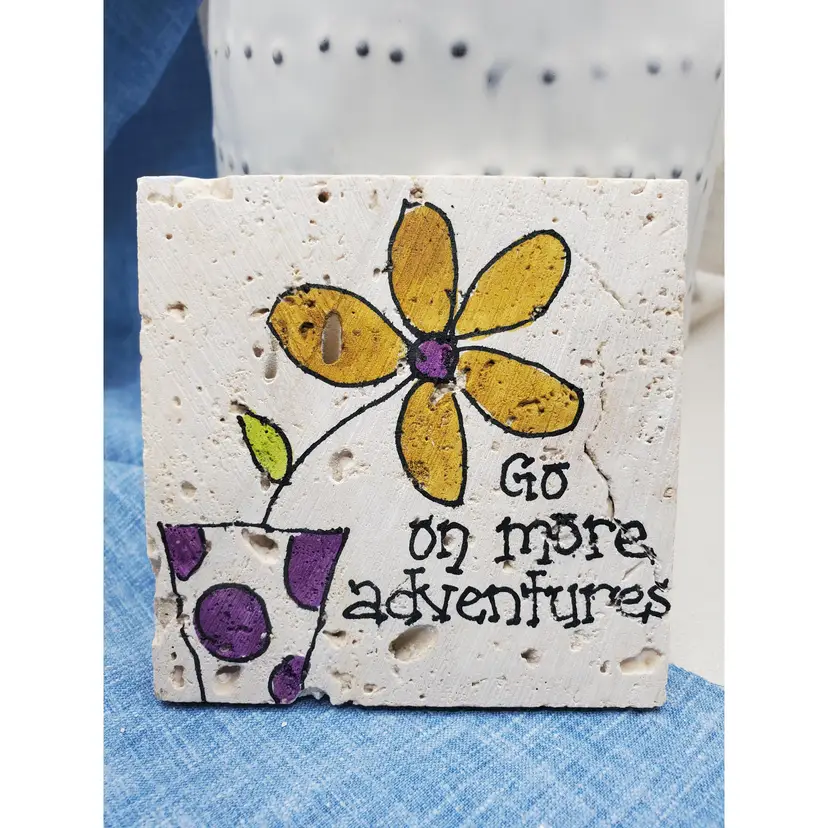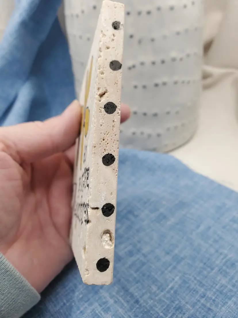 4" x 4" natural stone tiles wall art. Painted with India inks. Each is Handpainted by me in my Northern Illinois Home Studio. I enjoy painting on natural stone as their variations help to create one of a kind look!
