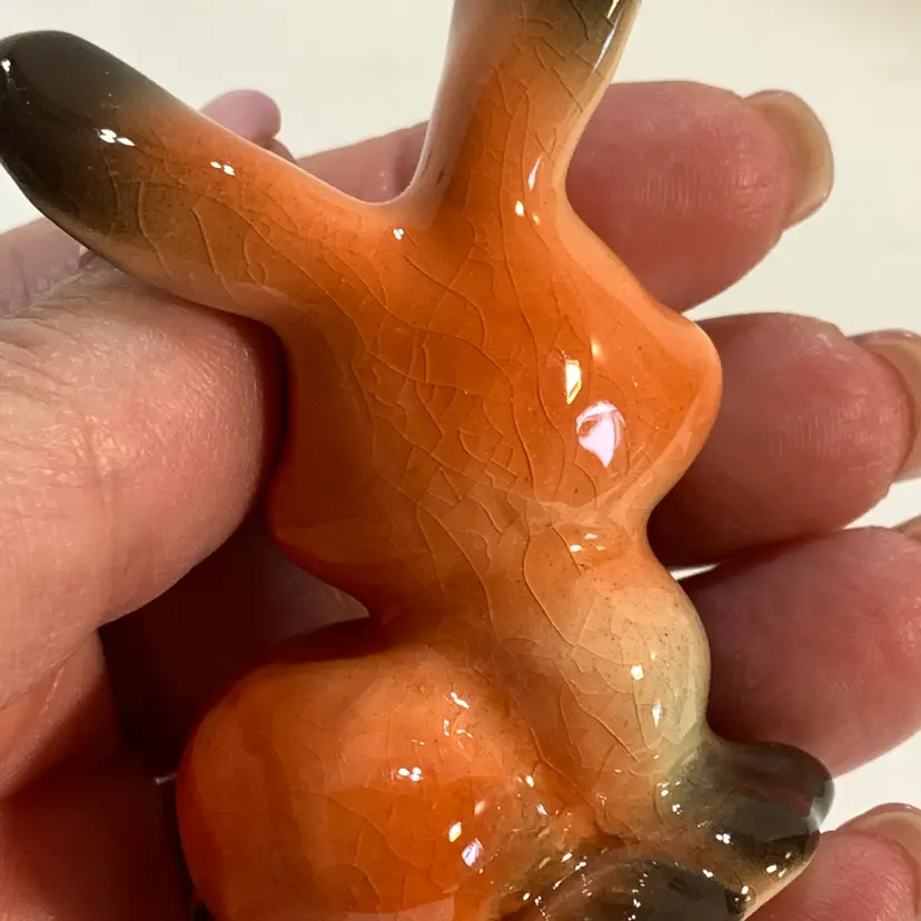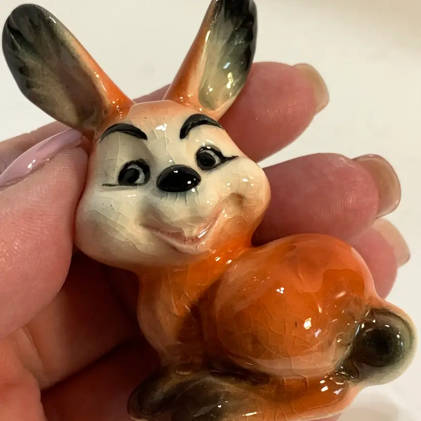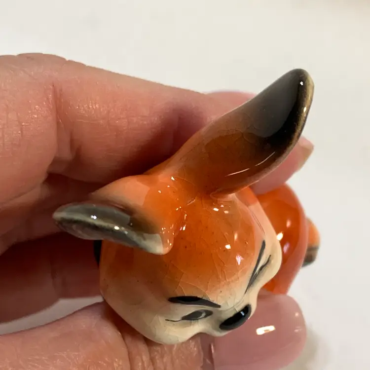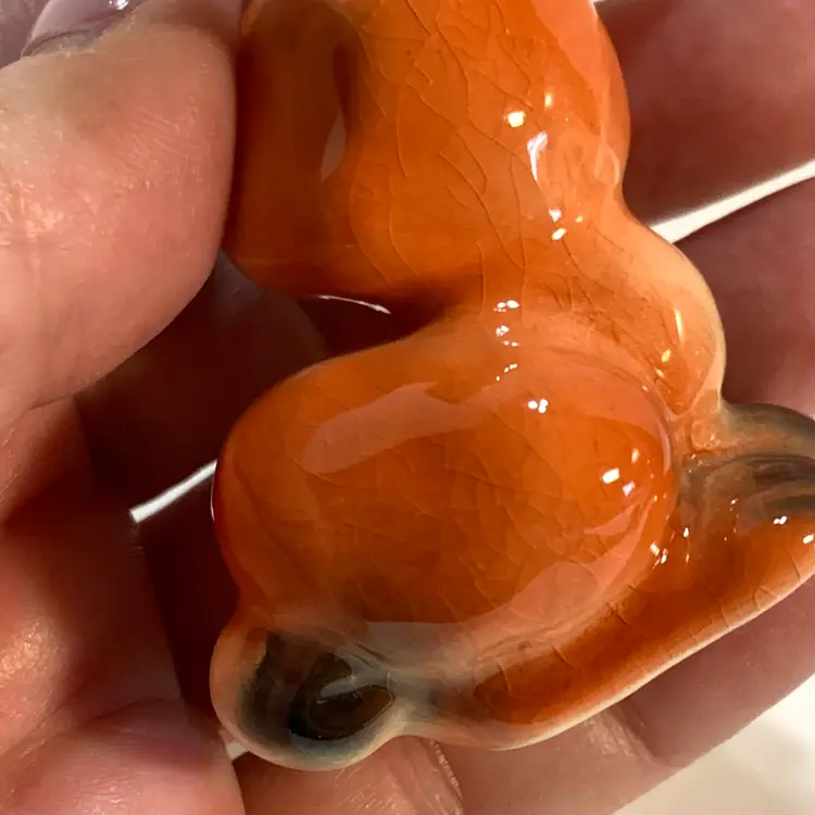 Just look at that cute face! This is in good condition. There are no chips or cracks but some crazing. Measures 2 inches across, 1 1/2 inches wide and 2 3/4 inches tall. Weighs 1 ounce. If the actual postage ends up being less than what you paid, you will be refunded for anything over one dollar.