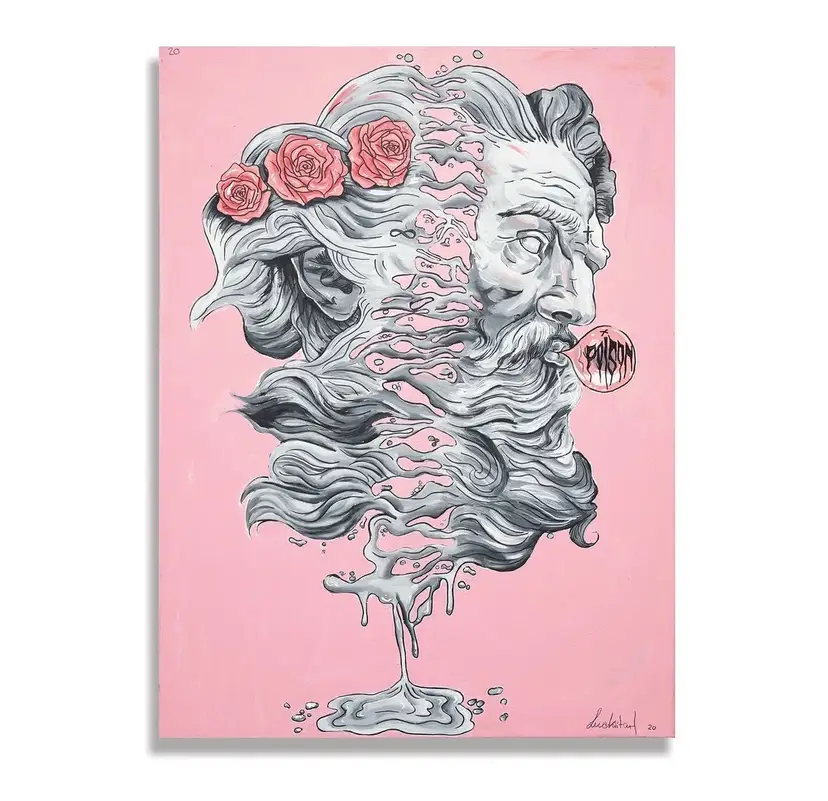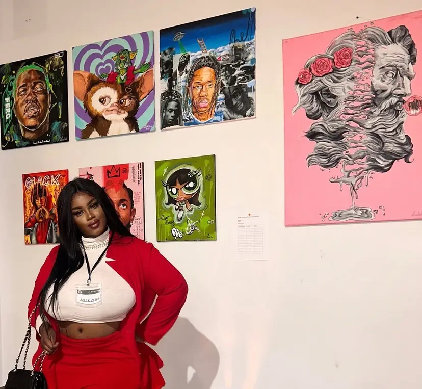 Born to creative parents — a former fashion designer and a musician — Luckitah grew up immersed in art and developed a passion for drawing at an early age. She first emerged on the Montreal art scene through urban events, where she sold her paintings and connected with local communities. Her first solo exhibition, Her Art, was held in 2017 and served as an great moment to share her work with friends and family. She has created and gifted artworks to well-known hip-hop figures such as Snoop Dogg, Ace Hood, DJ Boi-1da, and Sofiane. She also explored graphic design, collaborating on album covers within Montreal’s underground hip-hop scene. Deeply rooted in her Haitian heritage and the urban pulse of Montreal, her work combines symbolism, and mixed media expression.