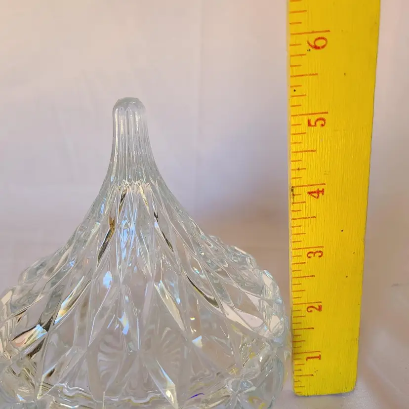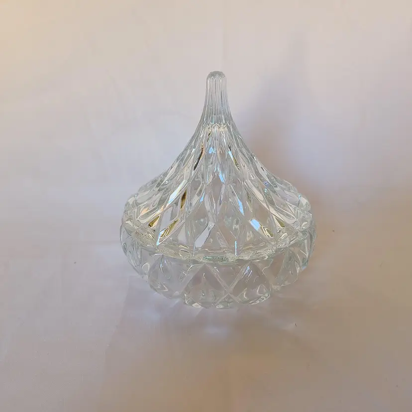 Hershey's Cut Crystal Kisses Glass Candy Dish This is a heavy dish Beautiful cut glass design all over In great pre-owned condition Measures 5.5" tall