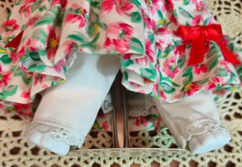 This adorable Goebel doll is in excellent, used condition, with no appreciable chips, scratches or cracks. I have not laundered her clothing so as to not compromise the integrity of the fabric. This may need to be done by the buyer. Measurements are depicted in the pictures of the item or listed in the description of the item. Please review the photos, as they are part of the item description. Photos will always reveal noticeable defects, as will my description. Any white “blemishes” that are not pointed out in this section are from the lighting that I use for my photos. If you need clarification, please reach out to me.