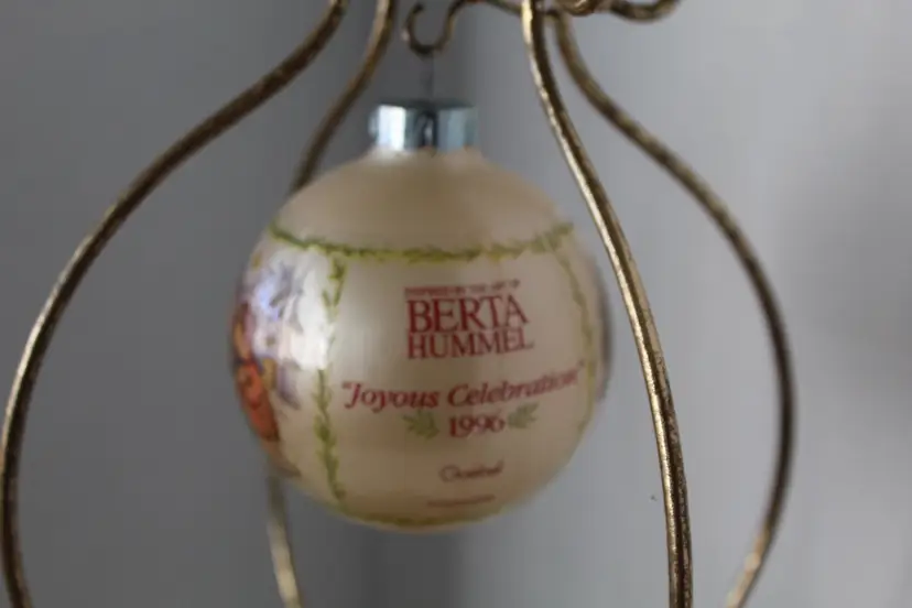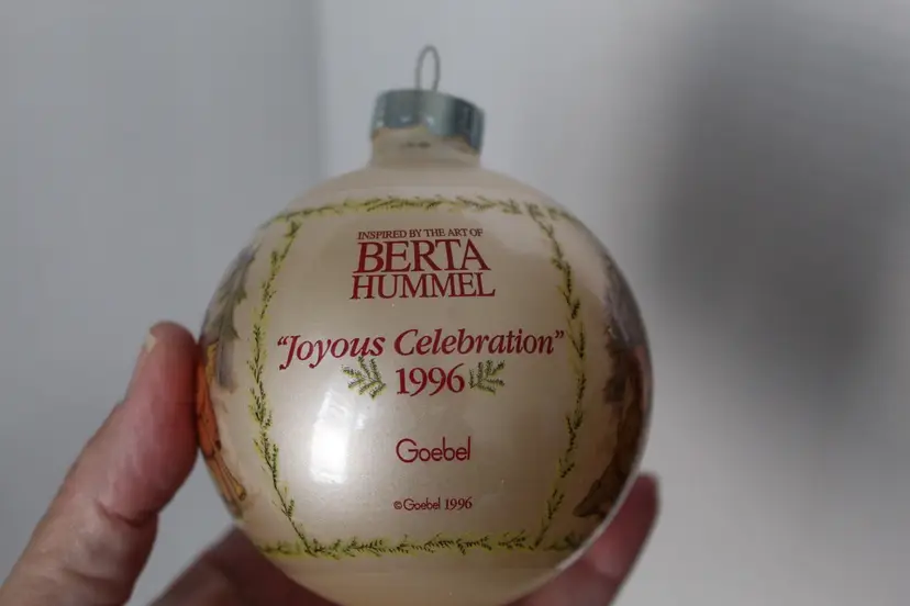 The Goebel 1996 "Joyous Celebration" Christmas Ornament is a vintage collectible inspired by Berta Hummel's work. This round ornament features a multicolor design and is part of the Hummel franchise. With a subject of Nativity, this original ornament stands at 4 inches tall and 3 inches wide, making it a unique addition to any Christmas ornament collection from the 1990s. The ornament captures the essence of a joyous holiday celebration and is a charming reminder of Christmas traditions.