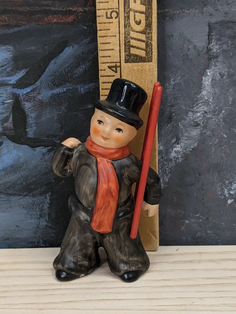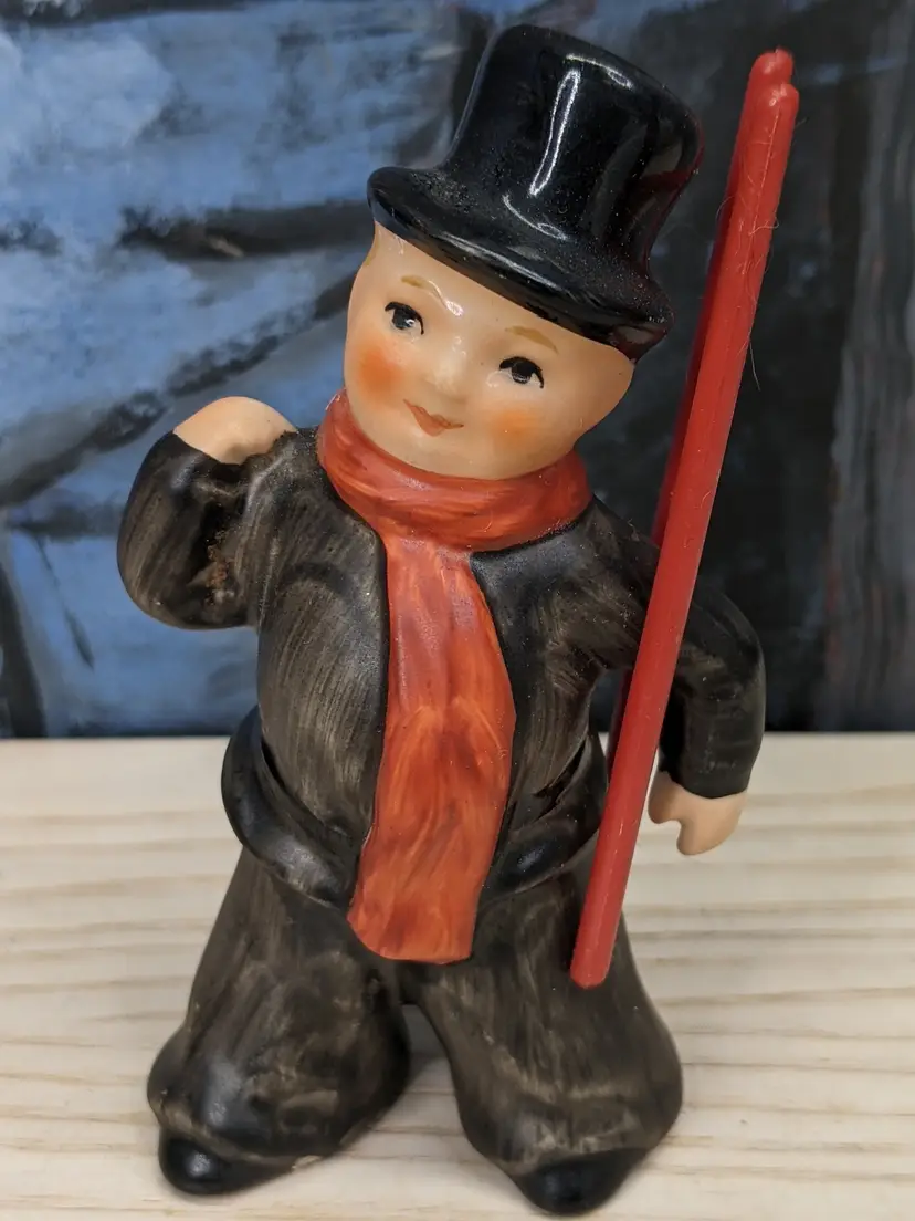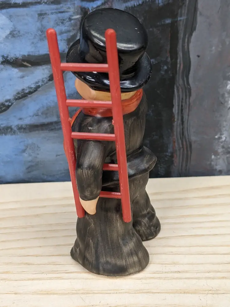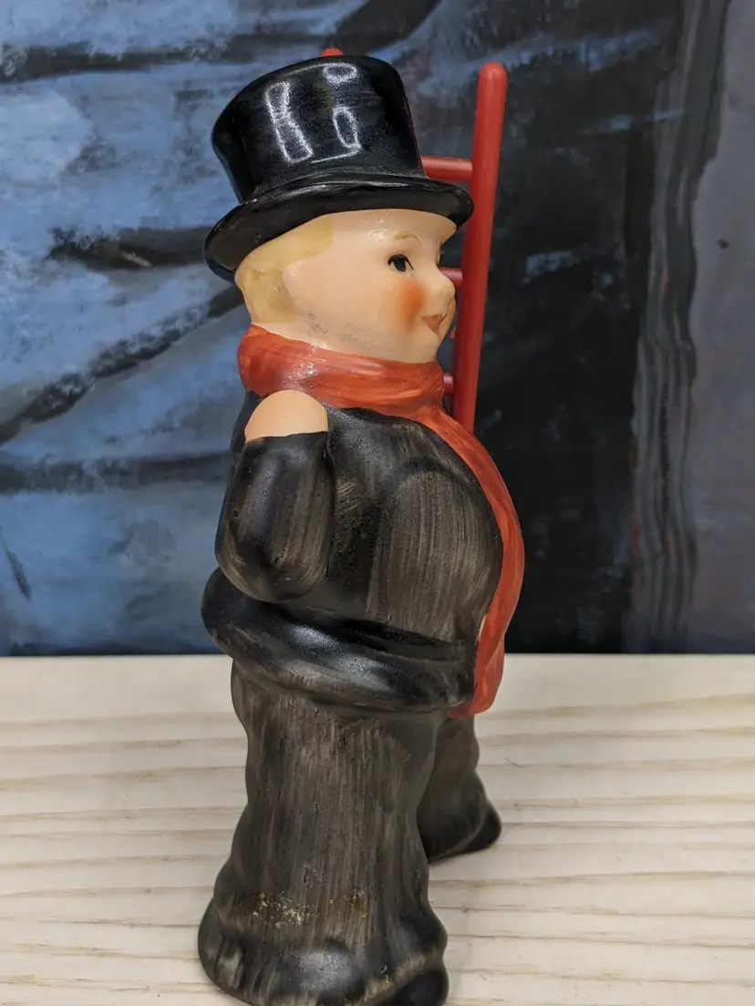 Goebel Chimney Sweep Man 3 3/4" West Germany He has his Ladder But is missing the brush. Figurine is Vintage With his Top Hat .Very good condition Clean with no damage.no chips or cracks no weird smells. Please check the photos for details. Comes from a smoke free home. We do have pets.