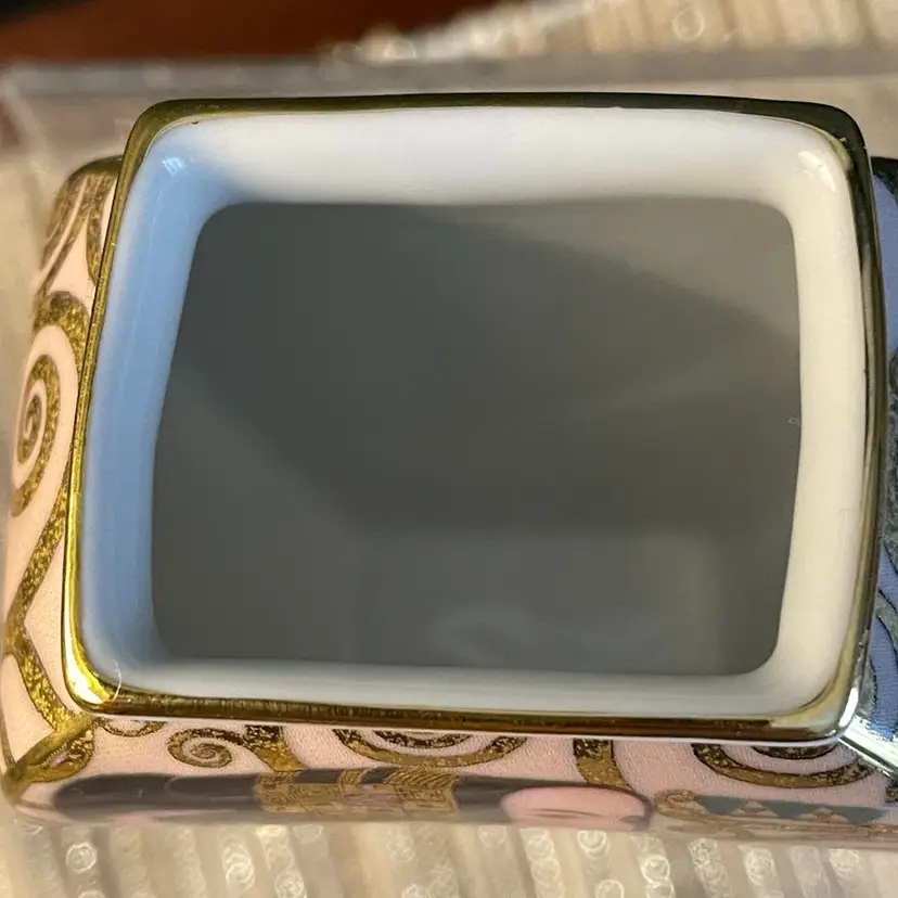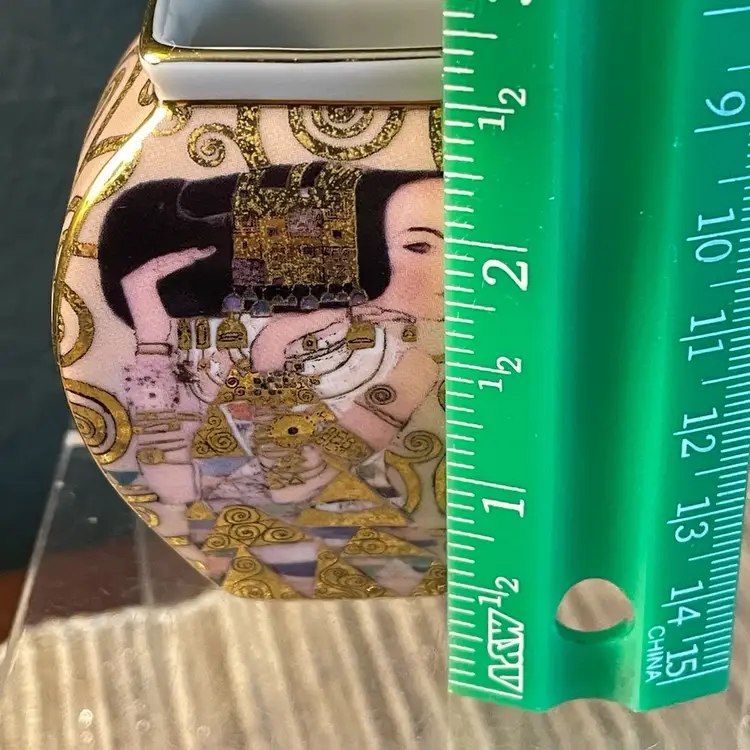2-5/8" H . Made of porcelain . I have had it for years unused , tho it may have been before me. Condition is good . Very beautiful !