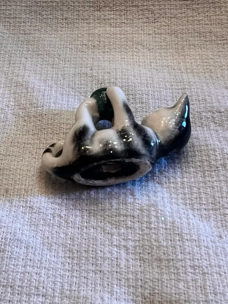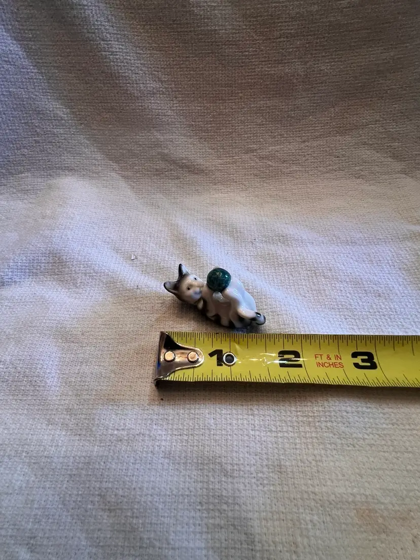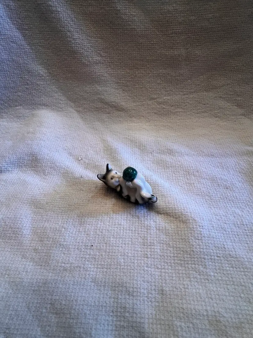 Goebel Miniature Porcelain Kitten Playing With Green Yarn Ball Figurine
