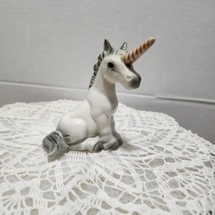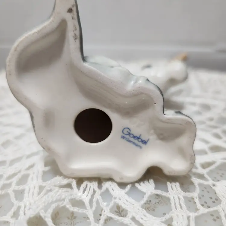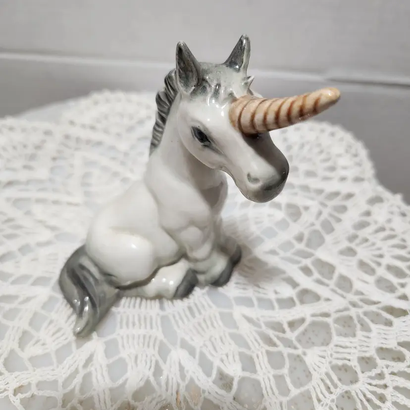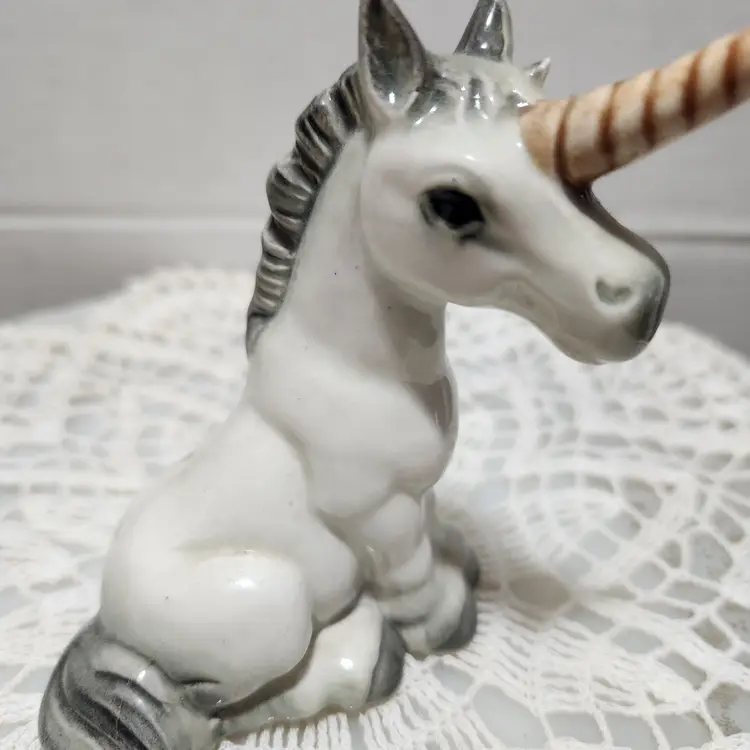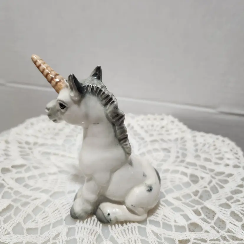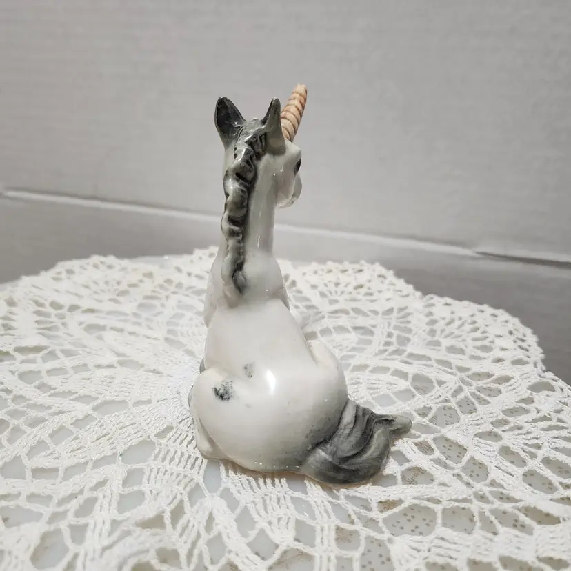 White and gray unicorn with a golden horn. Made by Goebel. 5 inches. Very good condition