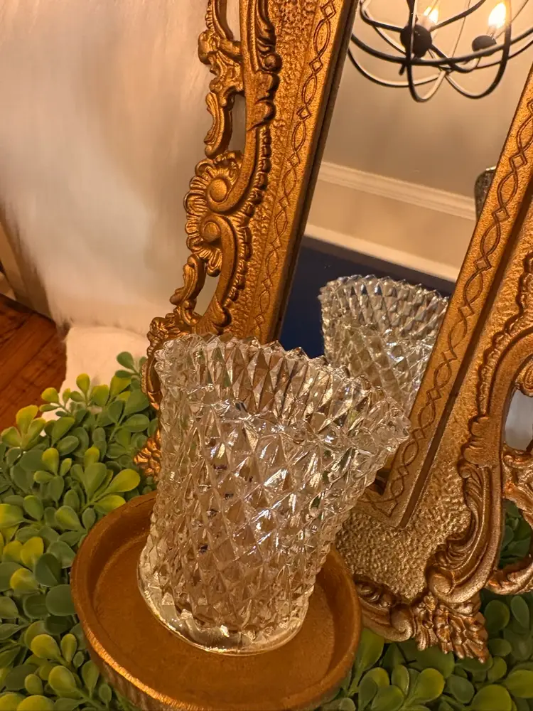 Gold Cast Iron Mirrored Wall Sconce with Crystal Candleholder 14”, excellent condition