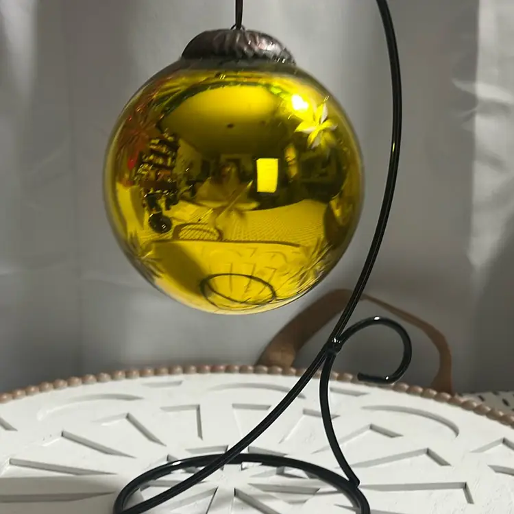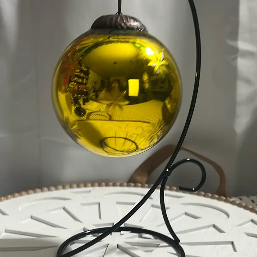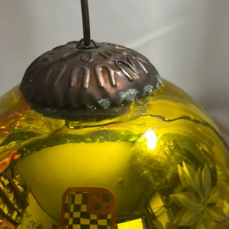 This beautiful gold glass blown ornament known as as the German Kugel is truly spectacular. The weight and thickness of the glass makes this vintage piece you need to have in your collection.