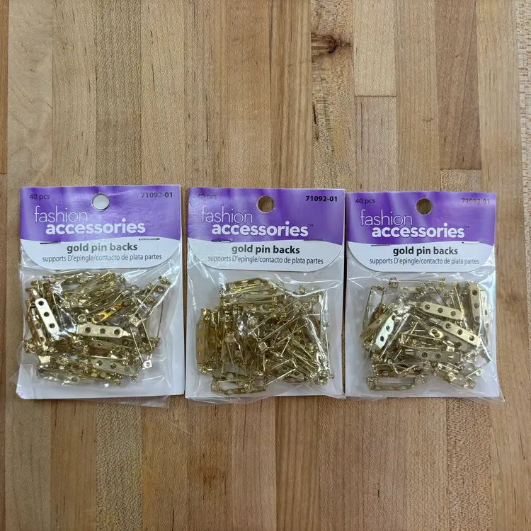 Gold Pin Backs Bar Style With Safety Catch 1”