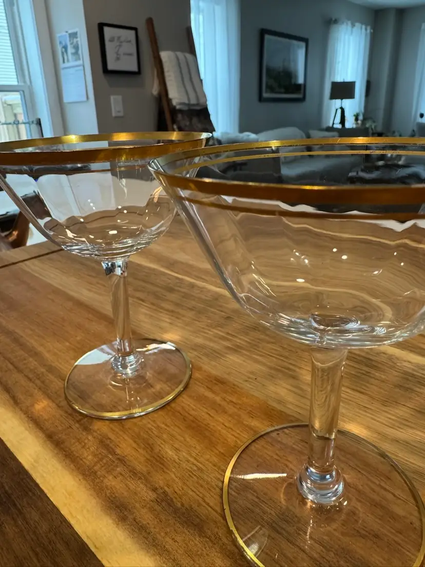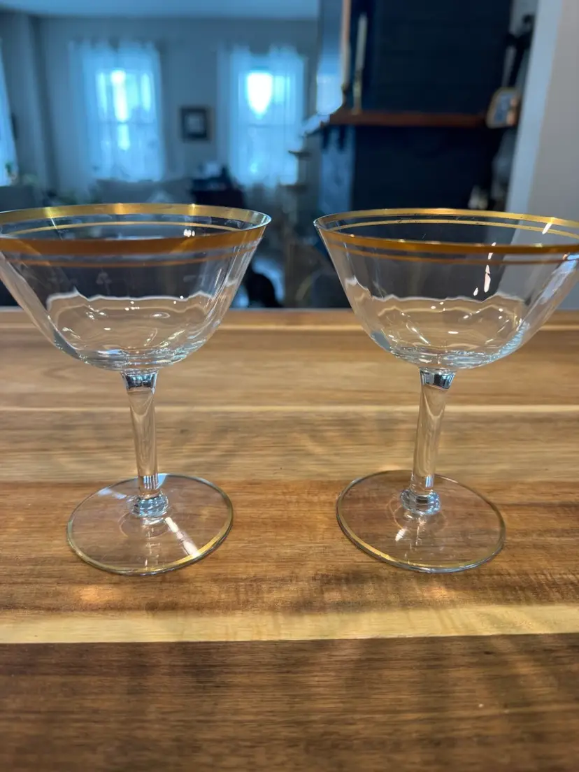 Mid century champagne coupes. Also lovely as dessert dishes. Set of 3