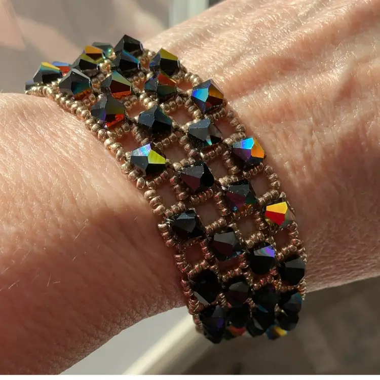 Clasp marked gold filled. From an artist's Estate in Southern California. In addition to beadwork, she was a professional porcelain painter.
