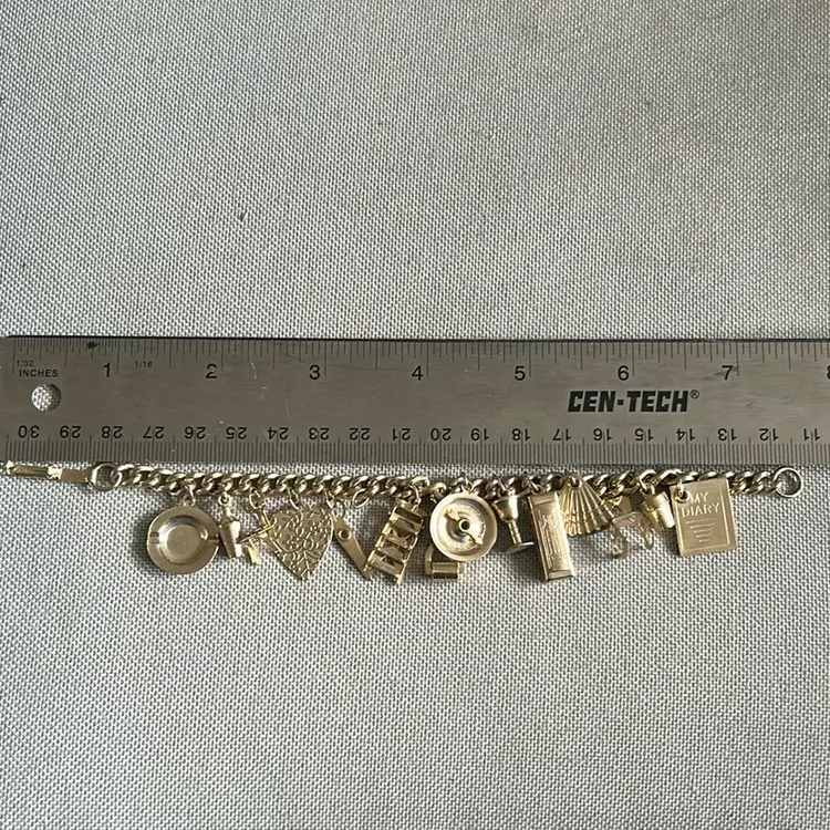 There are no maker’s marks but they are super fun and so many of them actually move. It is a larger chain link and the closure works well. It is 7 1/2 inches long and about 3 inches when closed.
