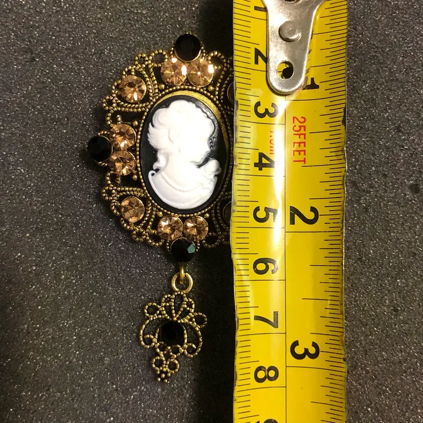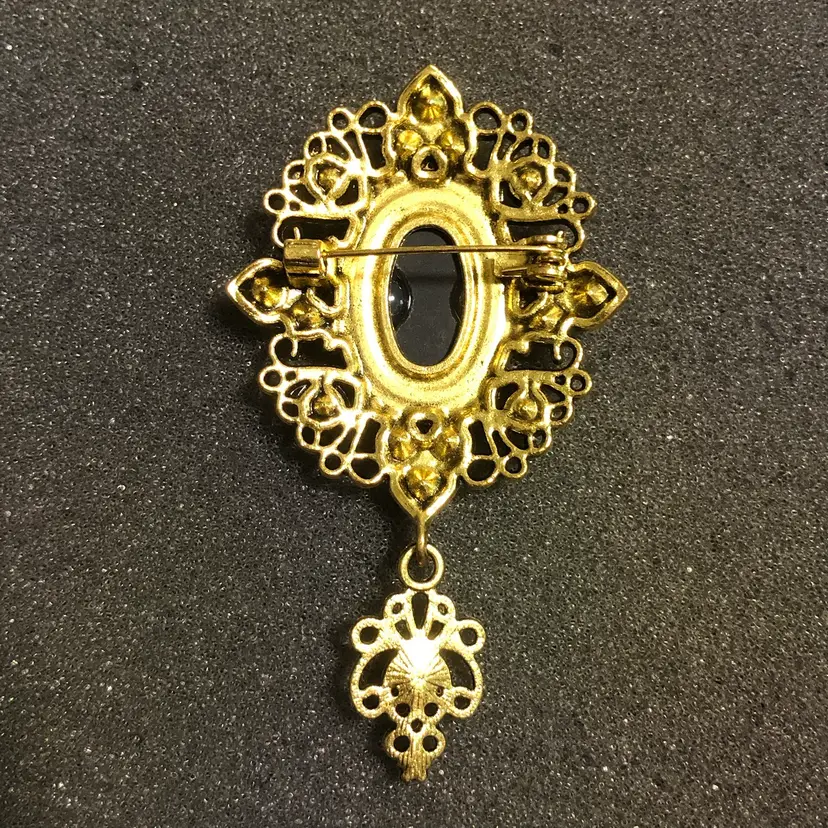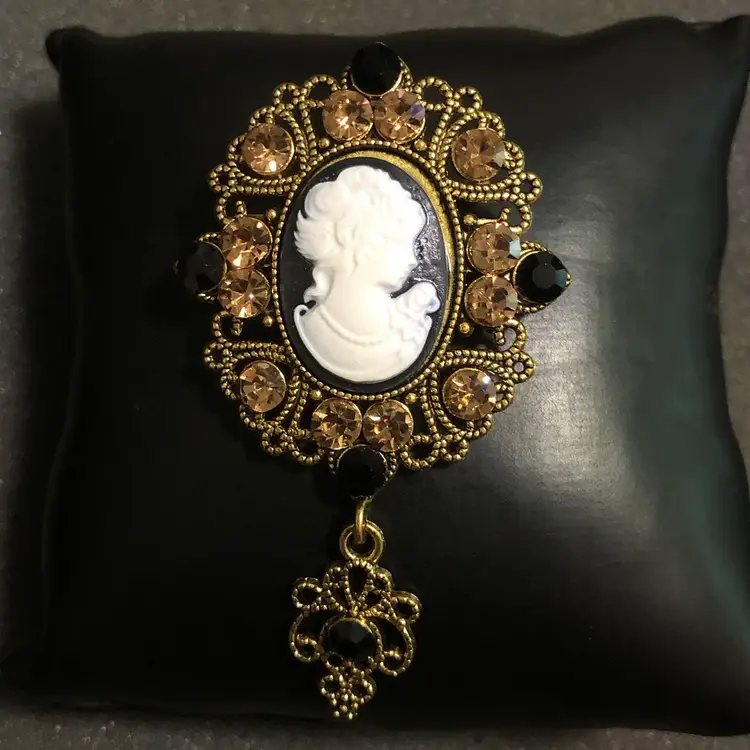 Gold-Tone Cameo with Jewels and Dangle Brooch