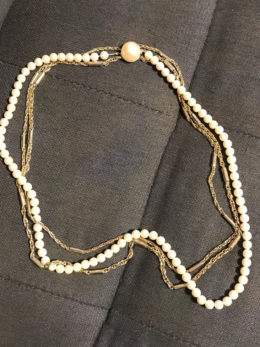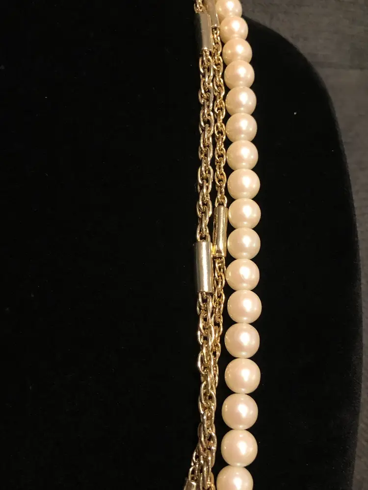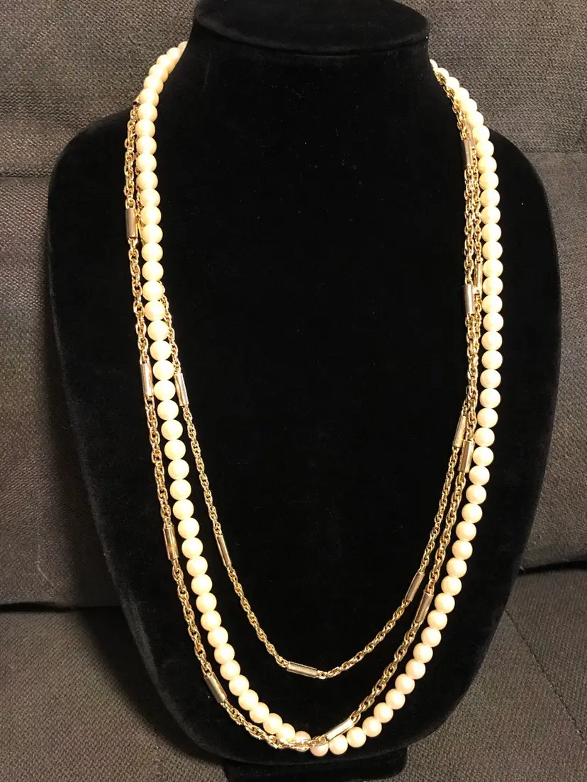 Gold-Tone Faux Pearl Elegant Multi-Strand Necklace